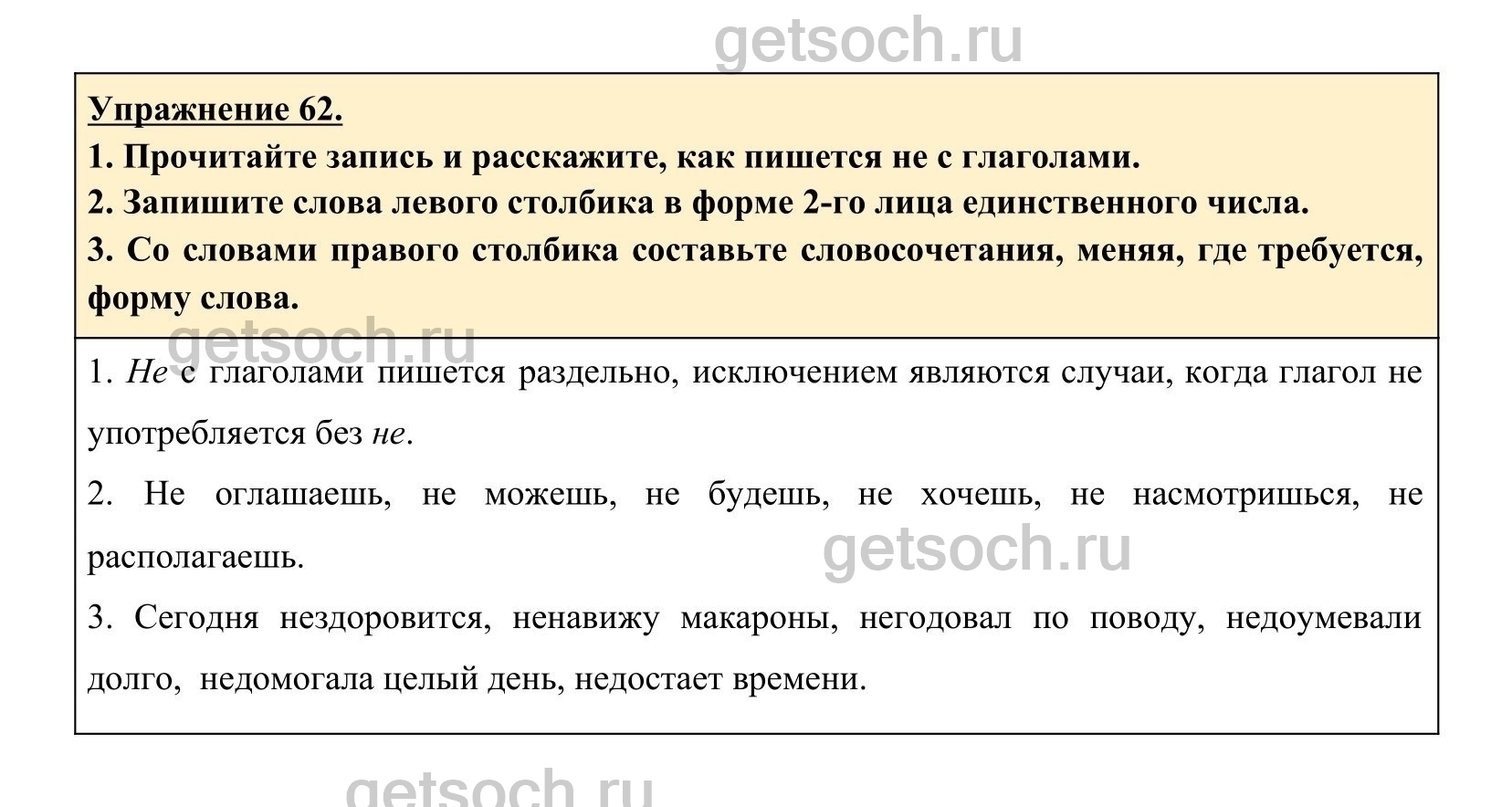 Рассмотрим ответы на Упражнение 62 из учебника по русскому языку для 6 класса Разумовской