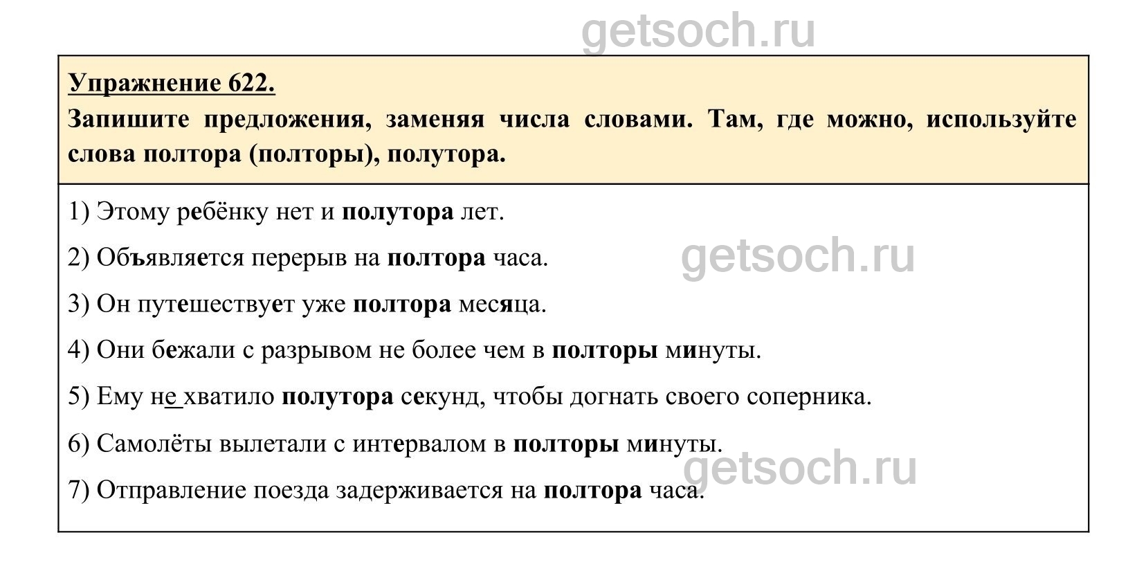 Рассмотрим ответы на Упражнение 622 из учебника по русскому языку для 6 класса Разумовской