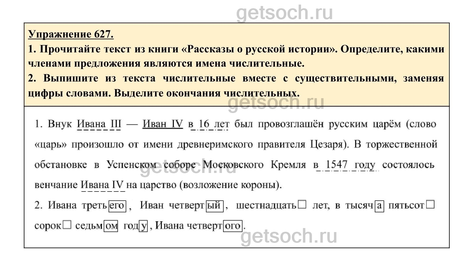 Рассмотрим ответы на Упражнение 627 из учебника по русскому языку для 6 класса Разумовской