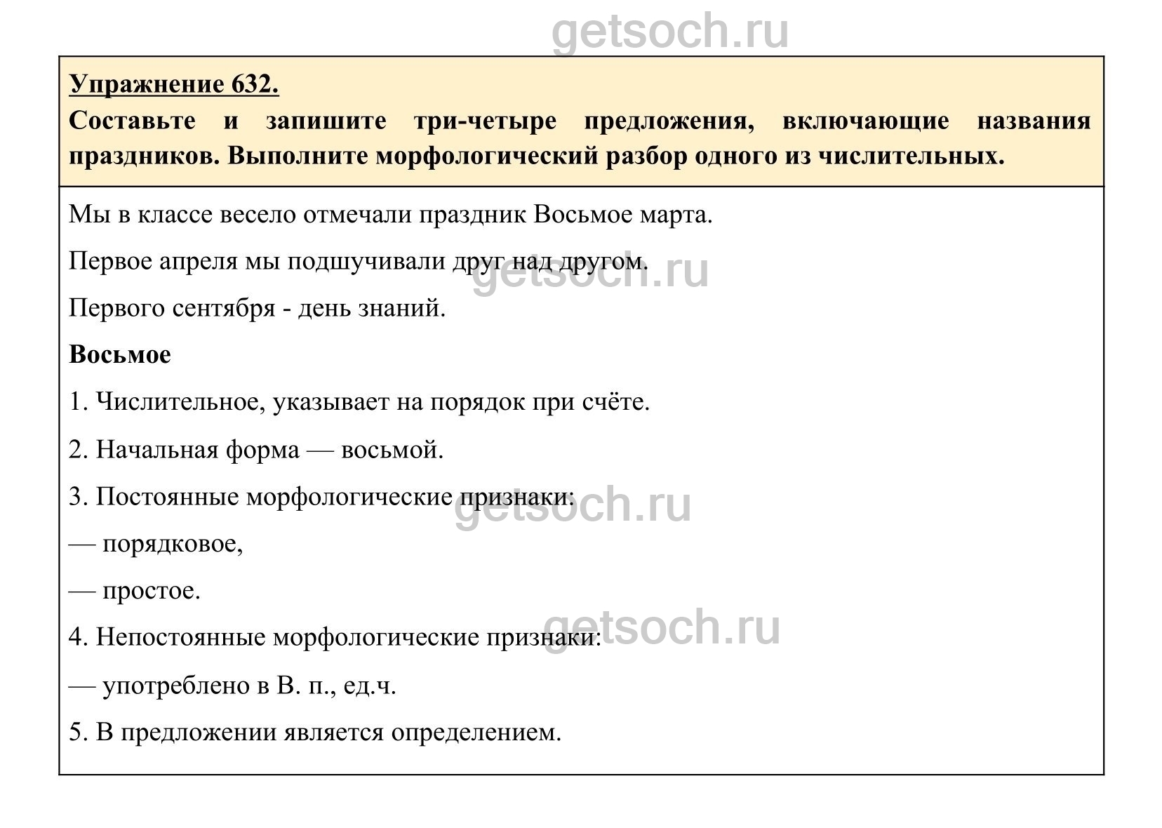 Рассмотрим ответы на Упражнение 632 из учебника по русскому языку для 6 класса Разумовской