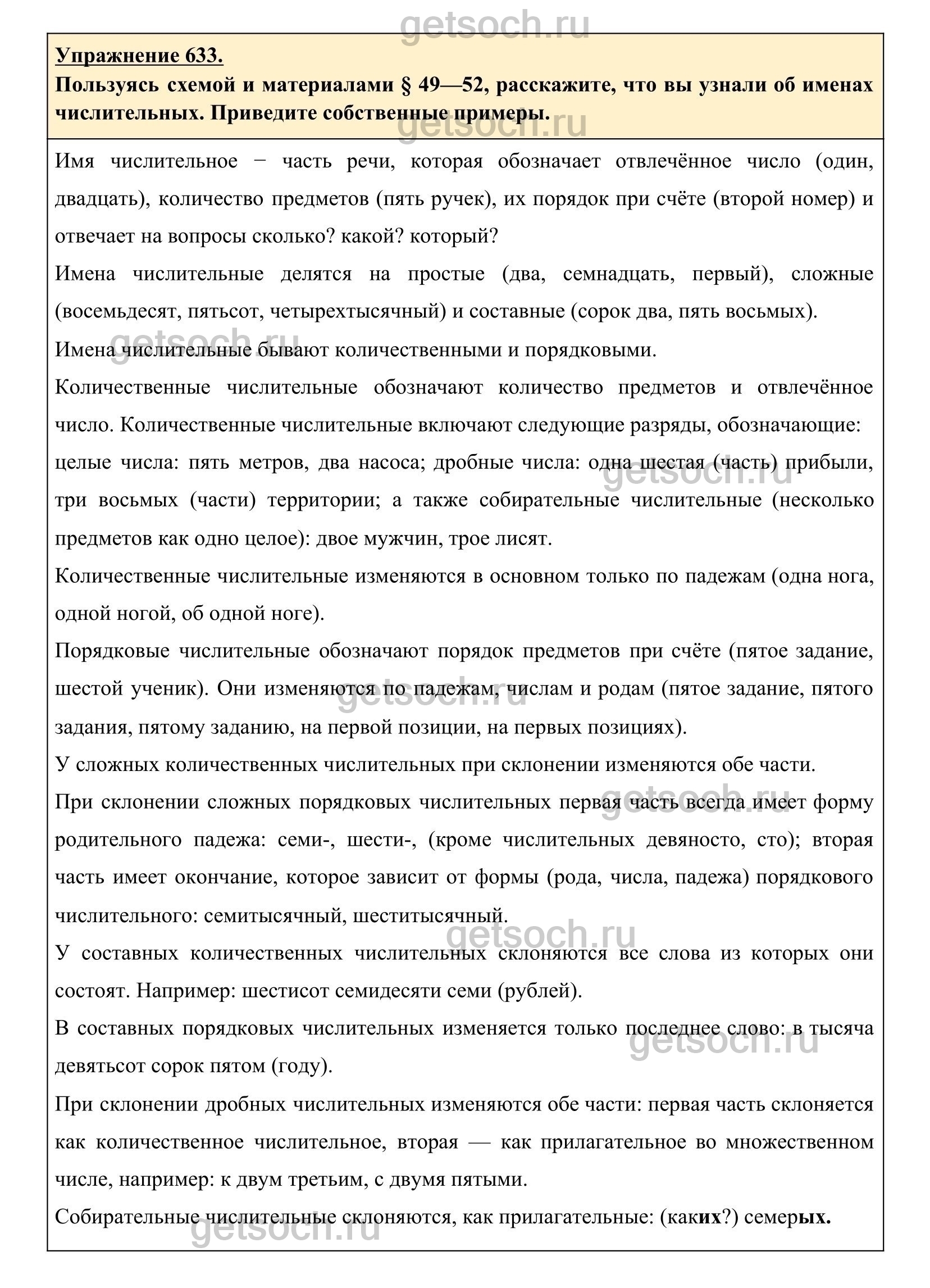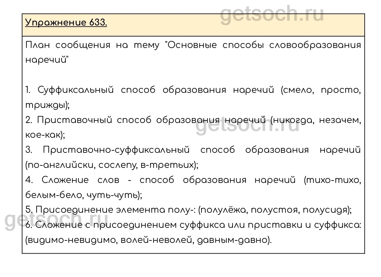 Рассмотрим ответы на Упражнение 633 из учебника по русскому языку для 6 класса Разумовской