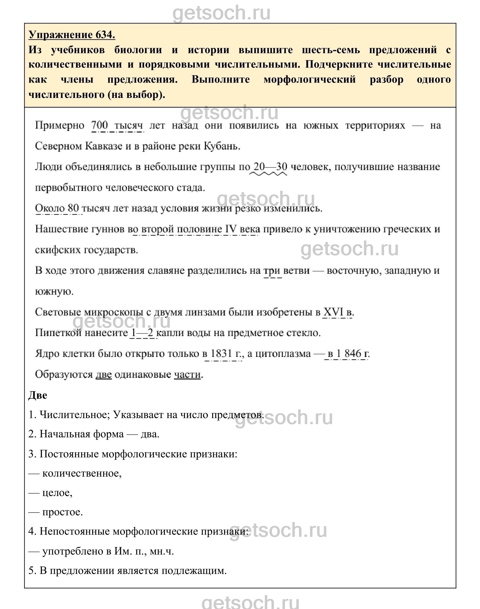Рассмотрим ответы на Упражнение 634 из учебника по русскому языку для 6 класса Разумовской