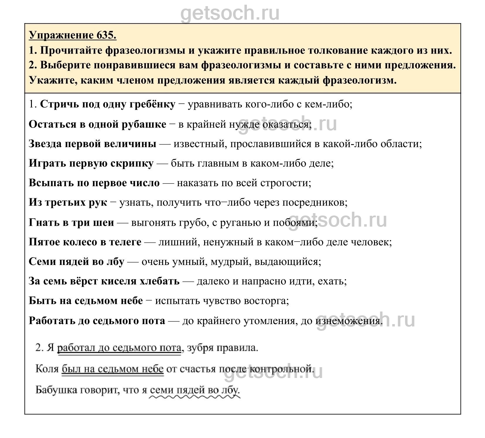 Рассмотрим ответы на Упражнение 635 из учебника по русскому языку для 6 класса Разумовской