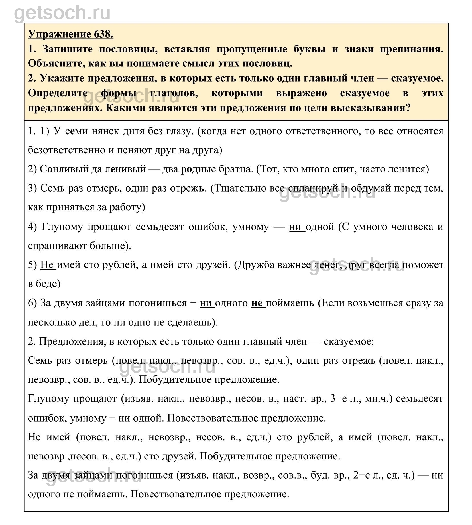 Рассмотрим ответы на Упражнение 638 из учебника по русскому языку для 6 класса Разумовской