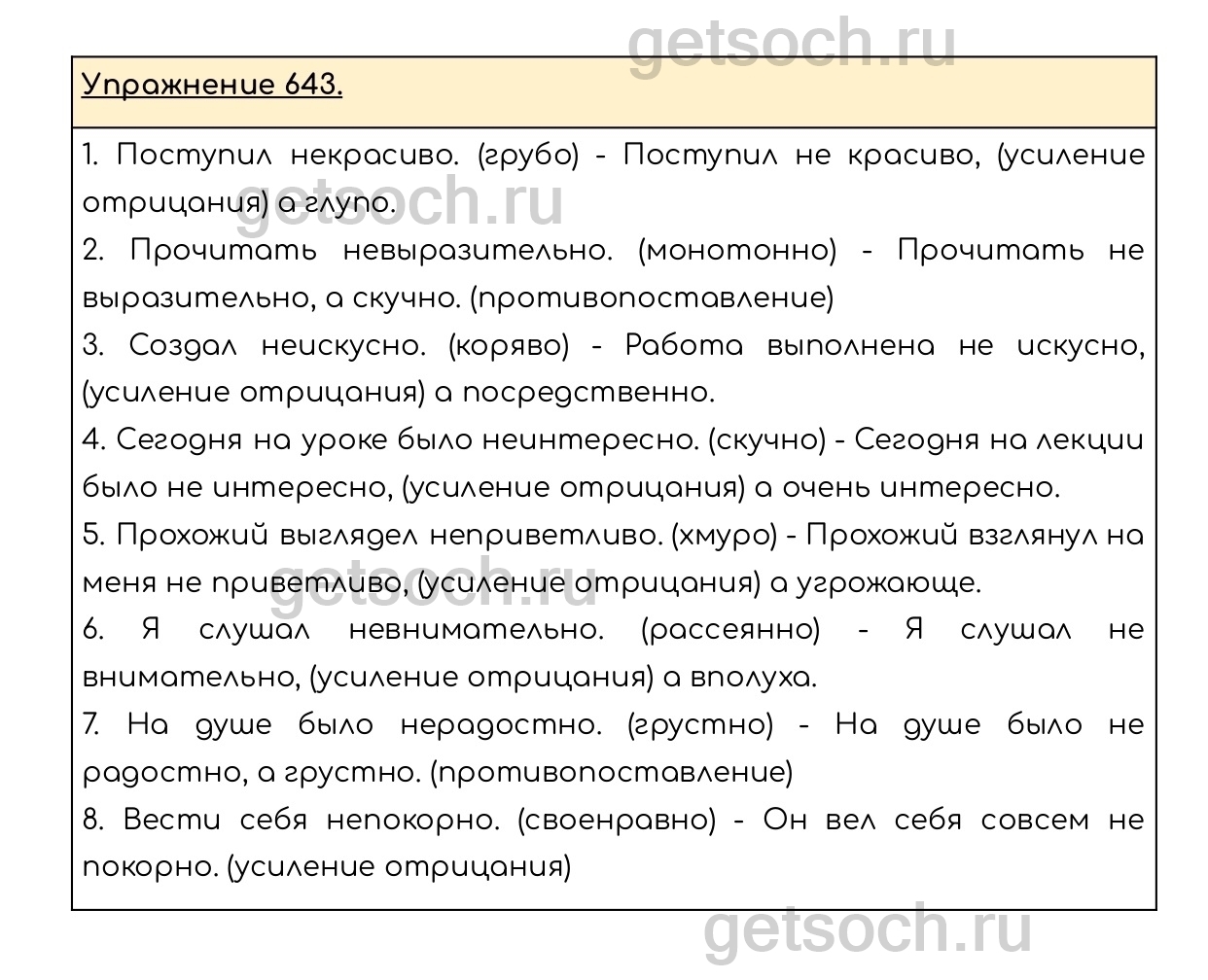 Рассмотрим ответы на Упражнение 643 из учебника по русскому языку для 6 класса Разумовской