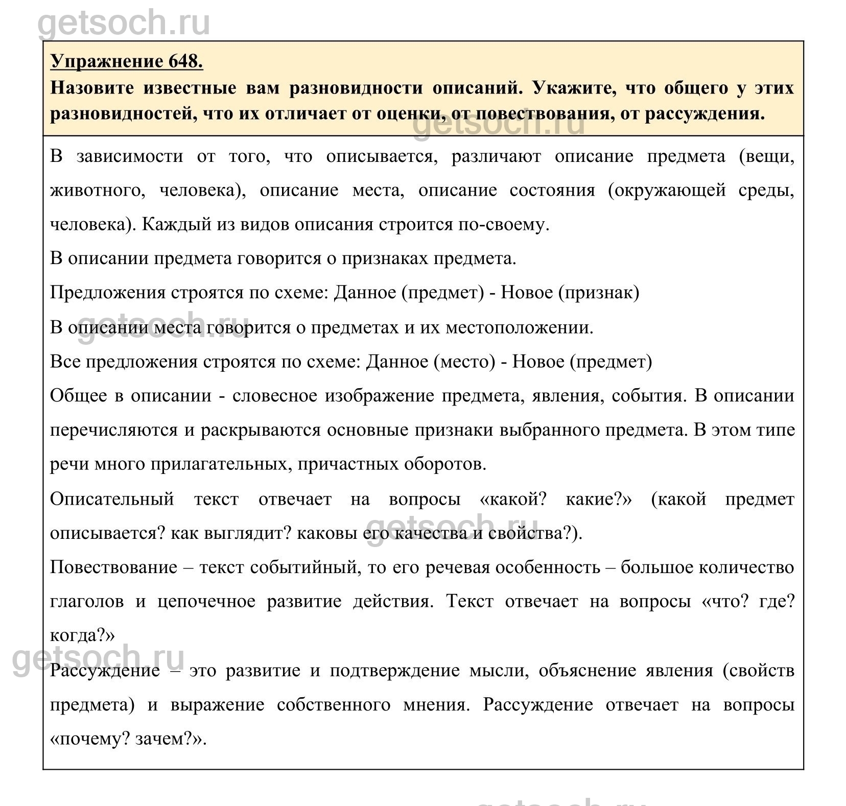 Рассмотрим ответы на Упражнение 648 из учебника по русскому языку для 6 класса Разумовской