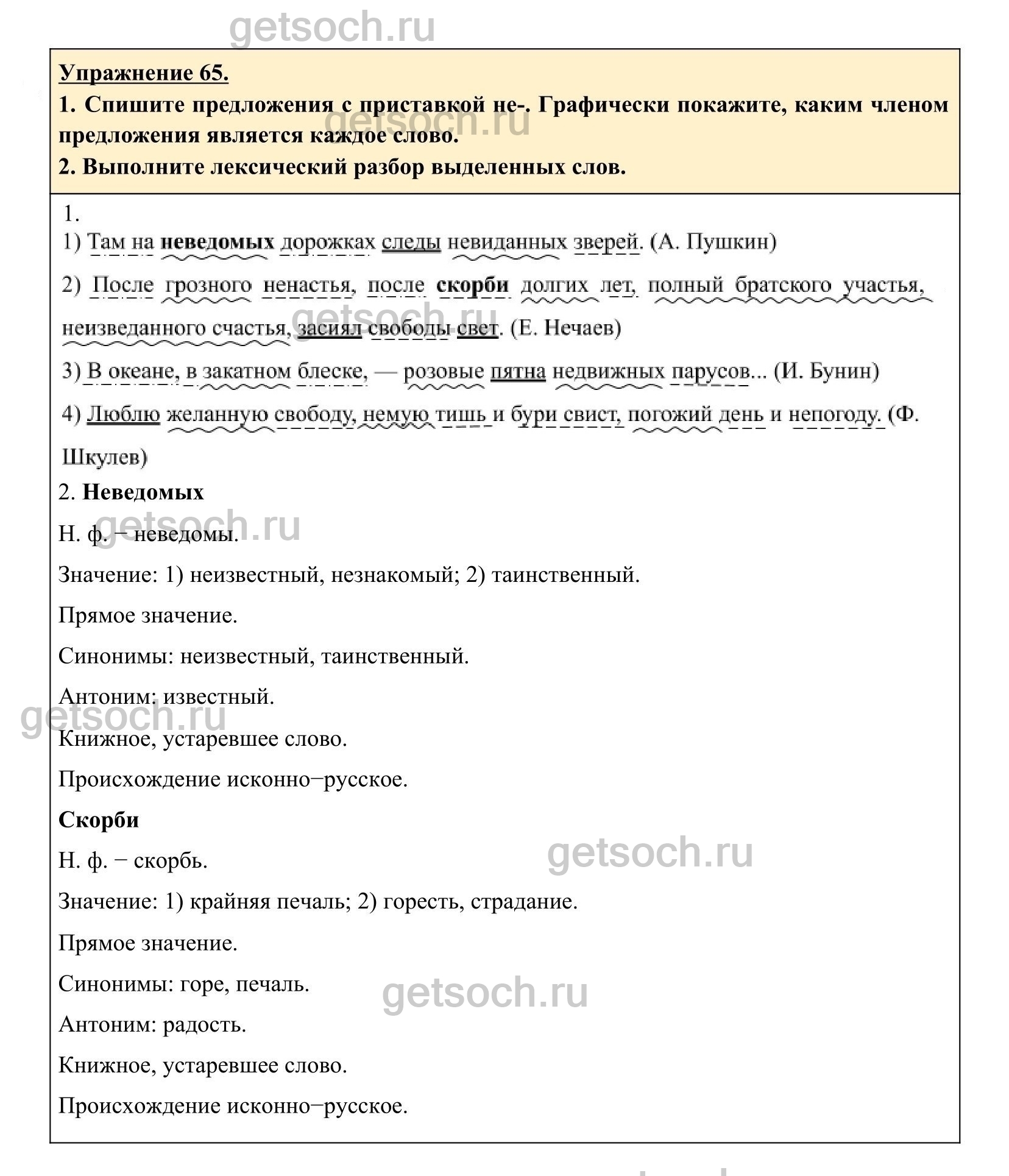 Рассмотрим ответы на Упражнение 65 из учебника по русскому языку для 6 класса Разумовской