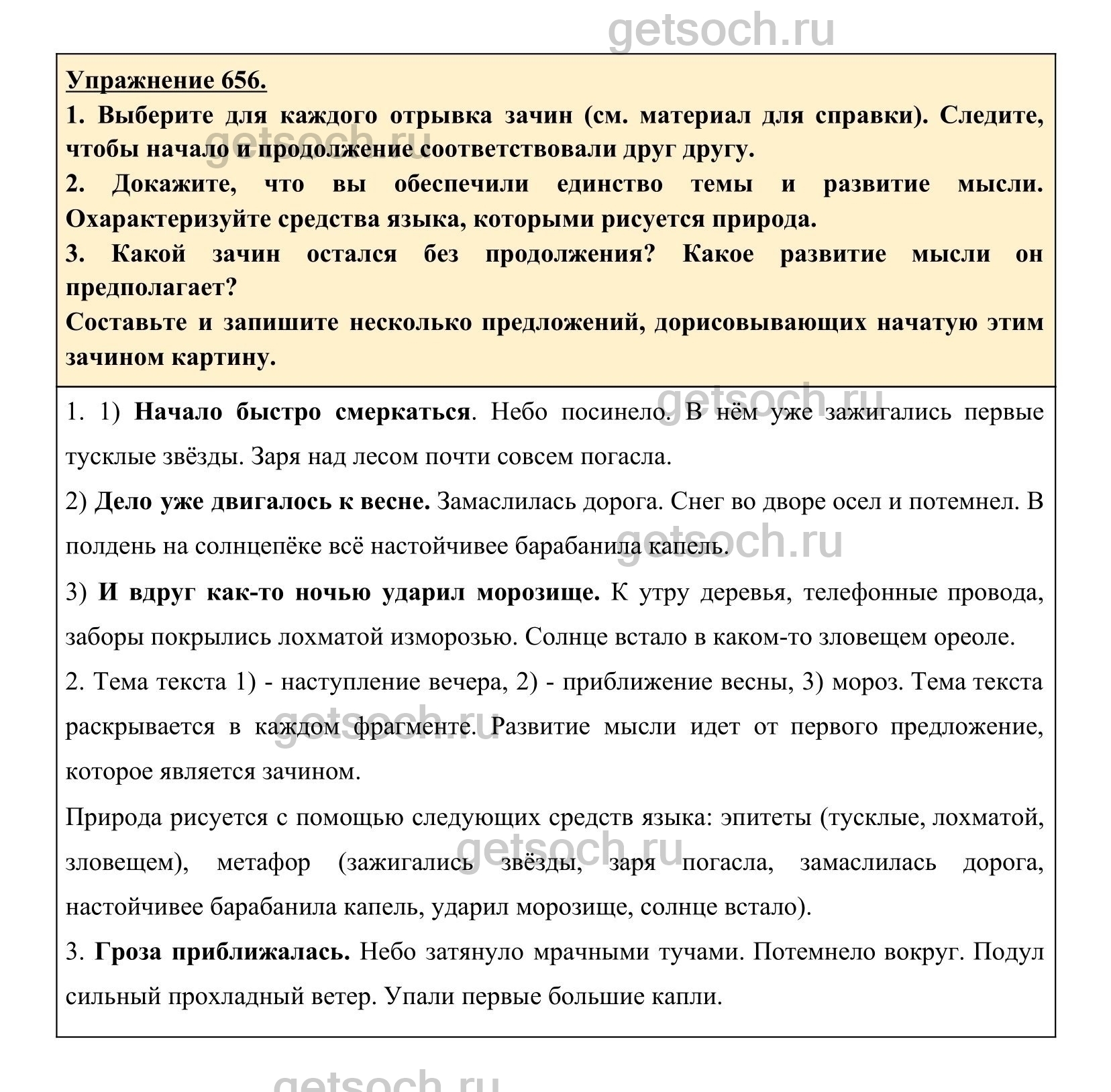 Рассмотрим ответы на Упражнение 656 из учебника по русскому языку для 6 класса Разумовской