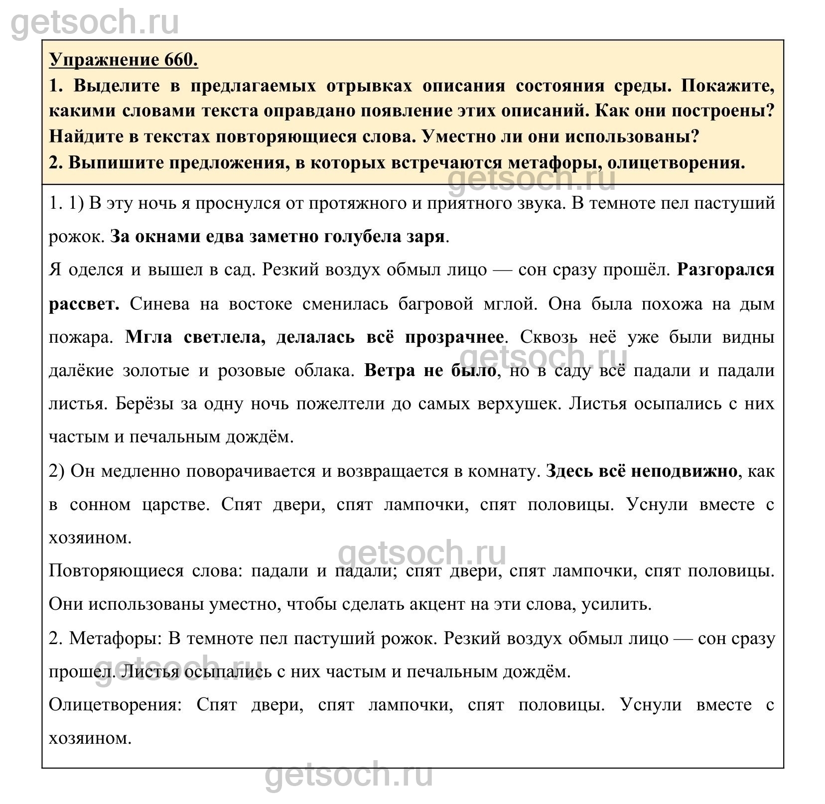 Рассмотрим ответы на Упражнение 660 из учебника по русскому языку для 6 класса Разумовской