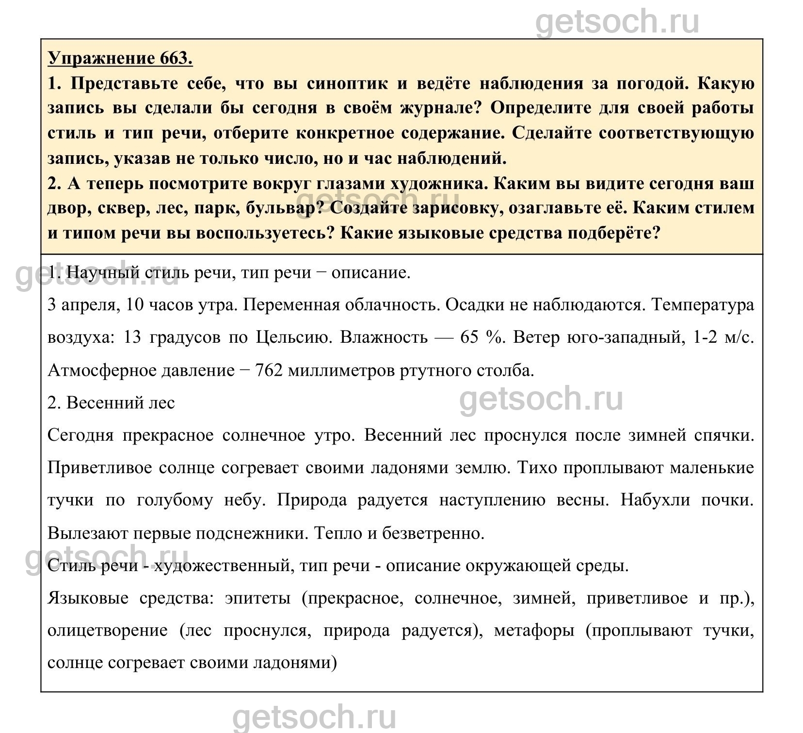 Рассмотрим ответы на Упражнение 663 из учебника по русскому языку для 6 класса Разумовской