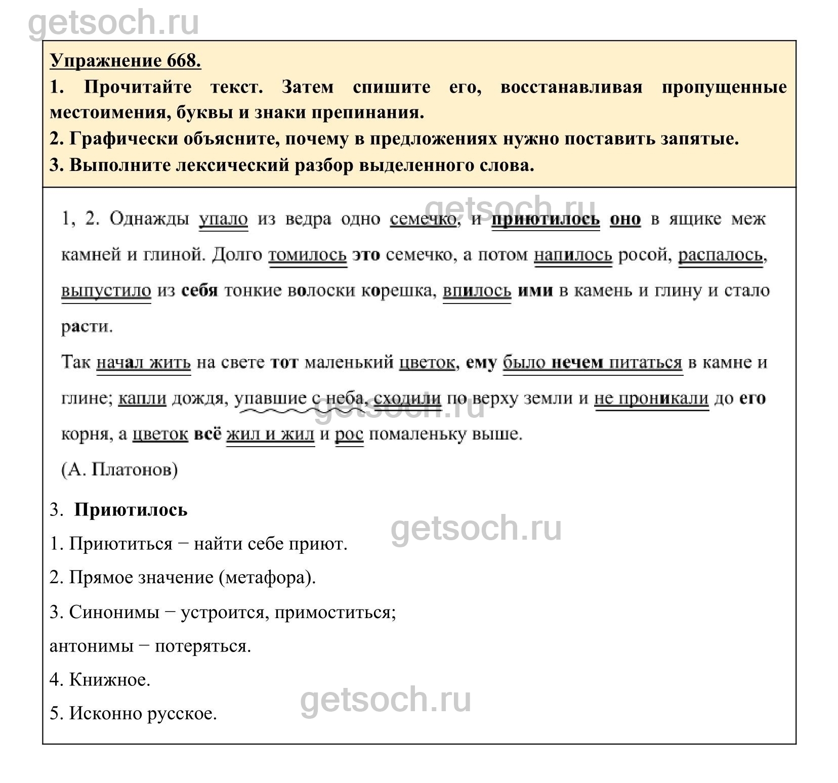 Рассмотрим ответы на Упражнение 668 из учебника по русскому языку для 6 класса Разумовской