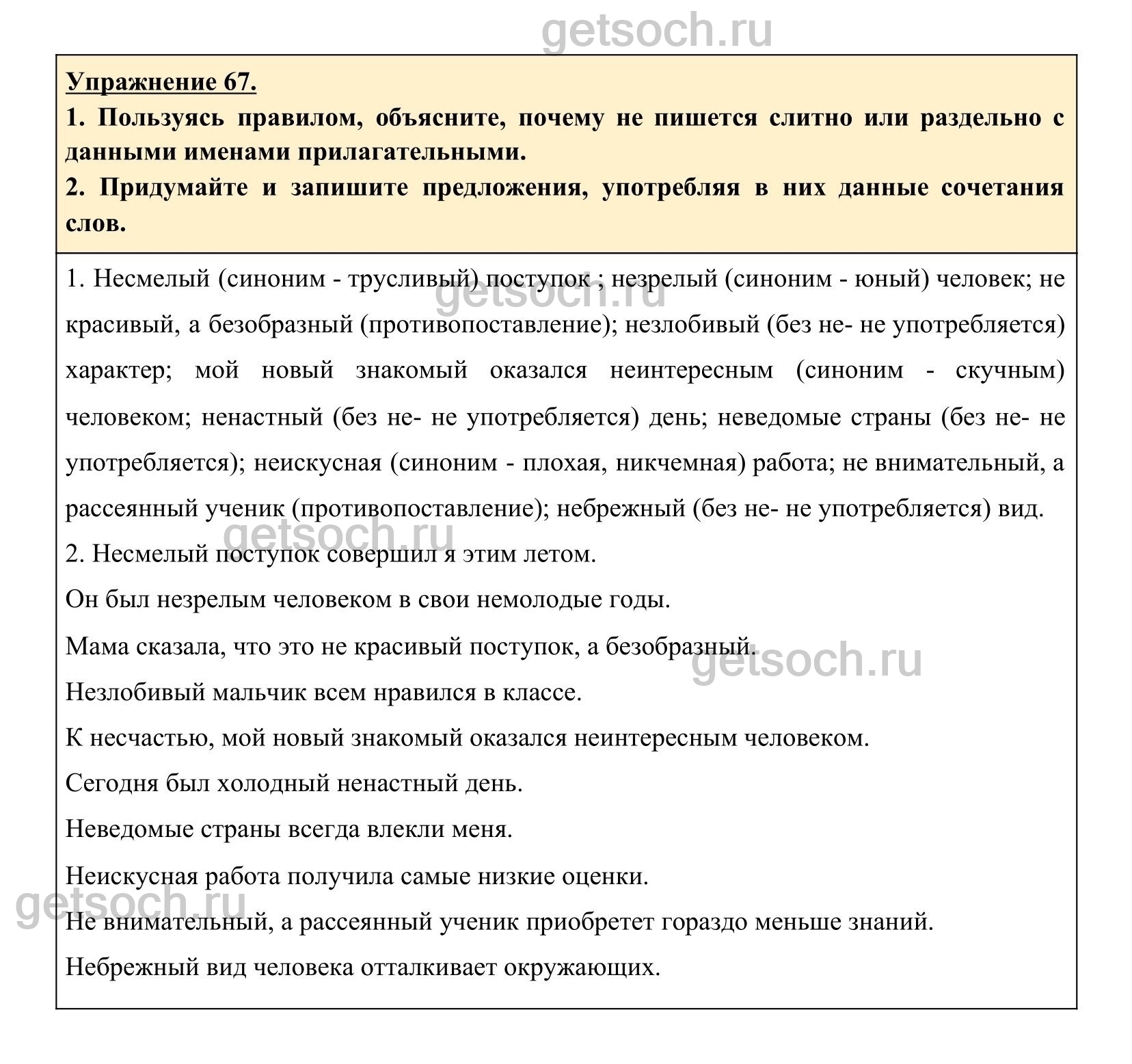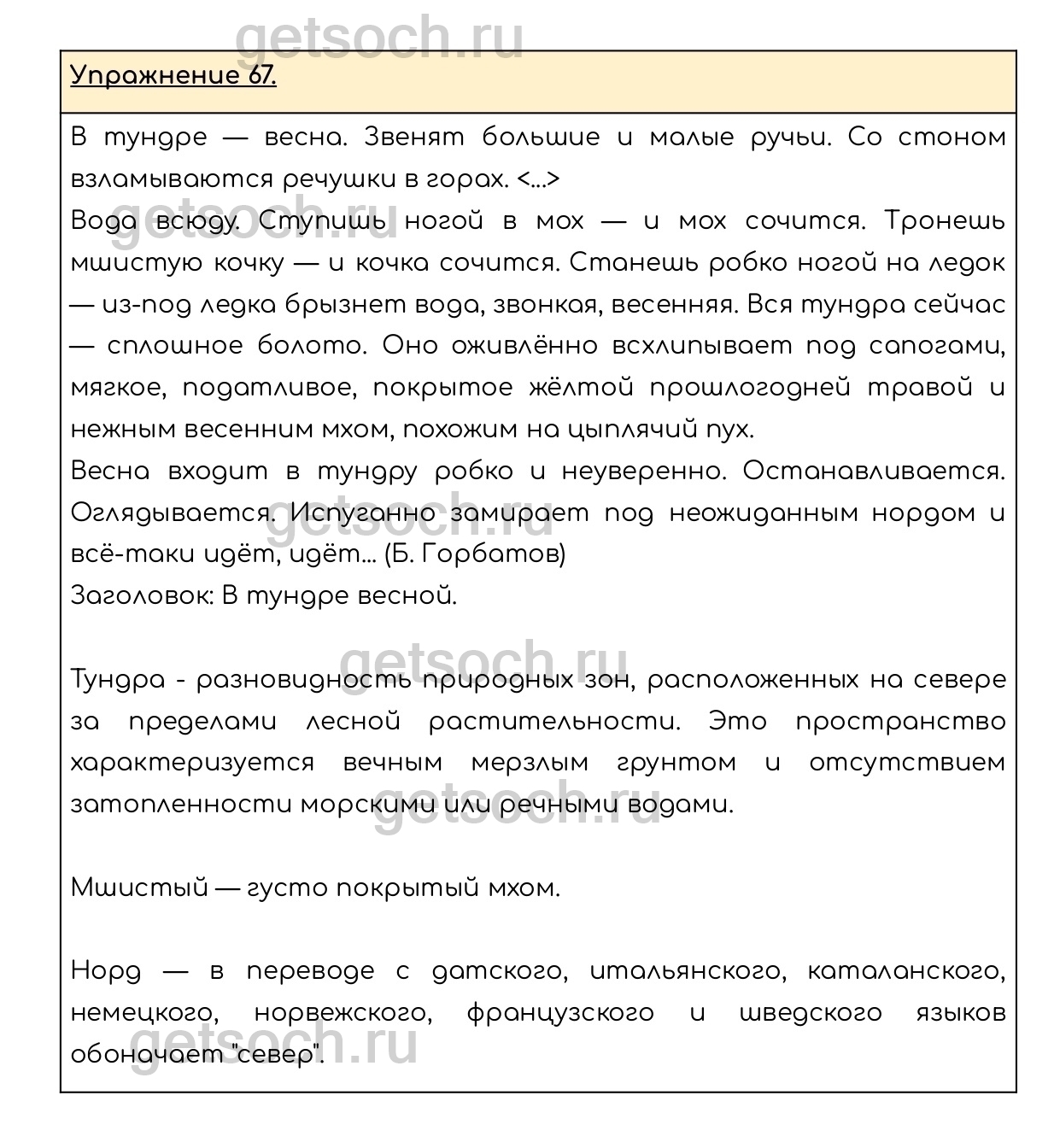 Рассмотрим ответы на Упражнение 67 из учебника по русскому языку для 6 класса Разумовской