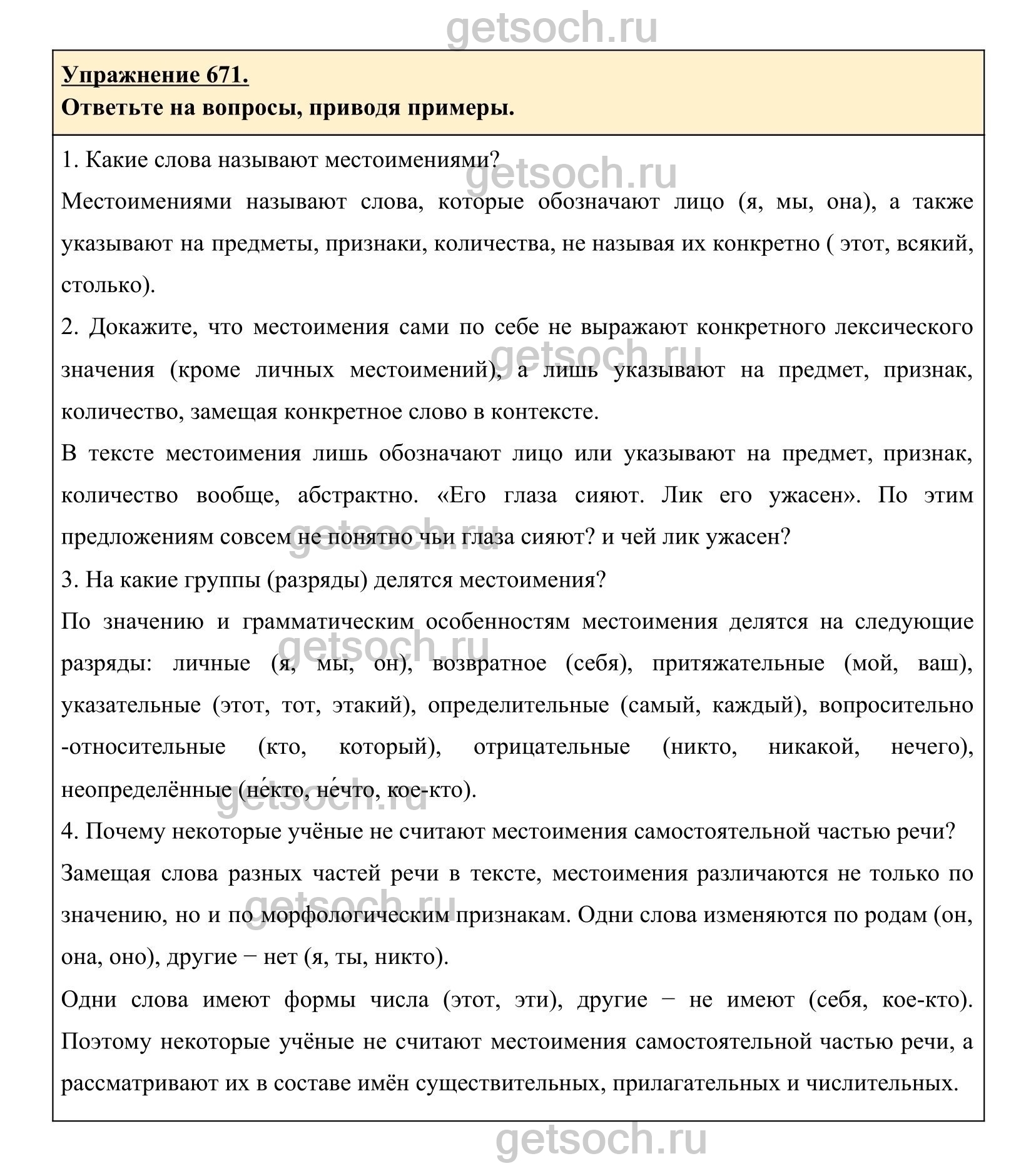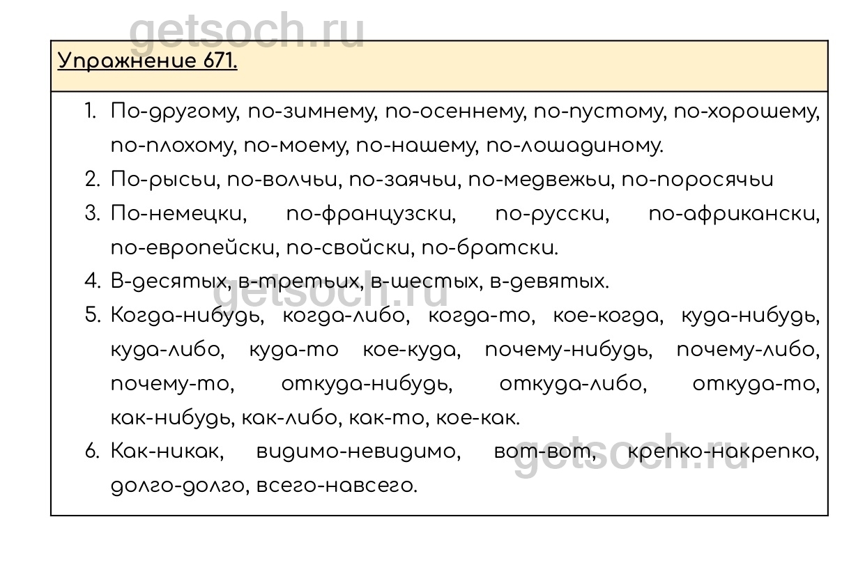Рассмотрим ответы на Упражнение 671 из учебника по русскому языку для 6 класса Разумовской