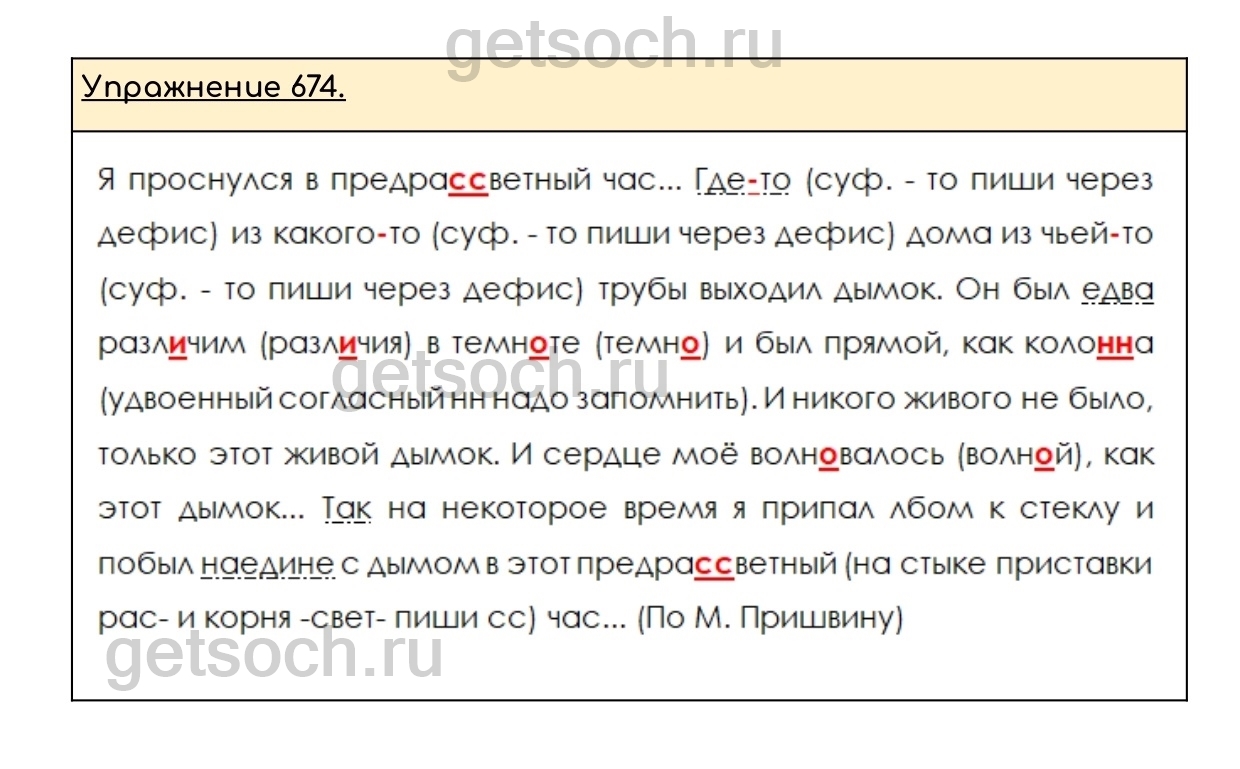 Рассмотрим ответы на Упражнение 674 из учебника по русскому языку для 6 класса Разумовской
