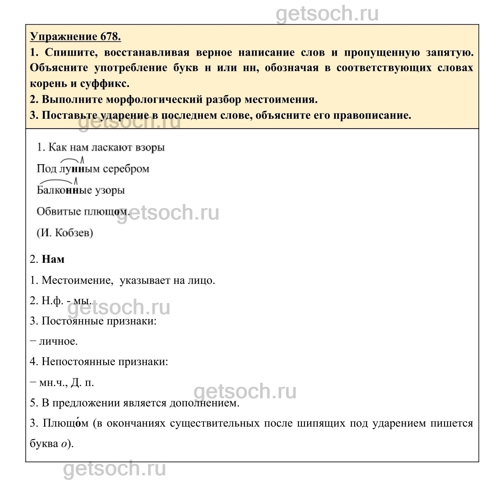 Рассмотрим ответы на Упражнение 678 из учебника по русскому языку для 6 класса Разумовской
