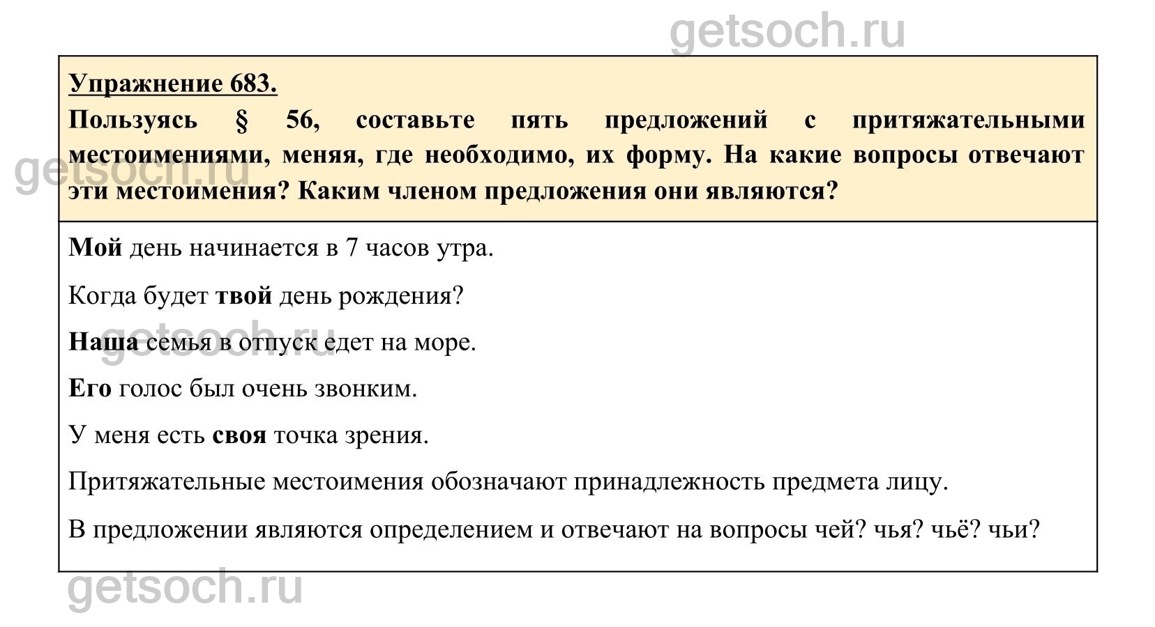 Рассмотрим ответы на Упражнение 683 из учебника по русскому языку для 6 класса Разумовской