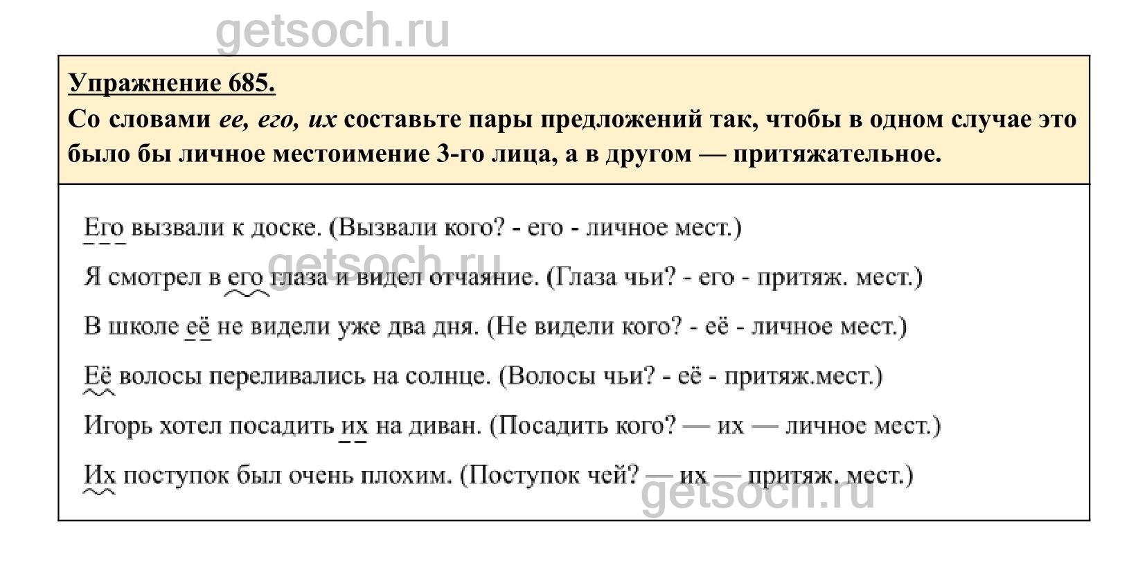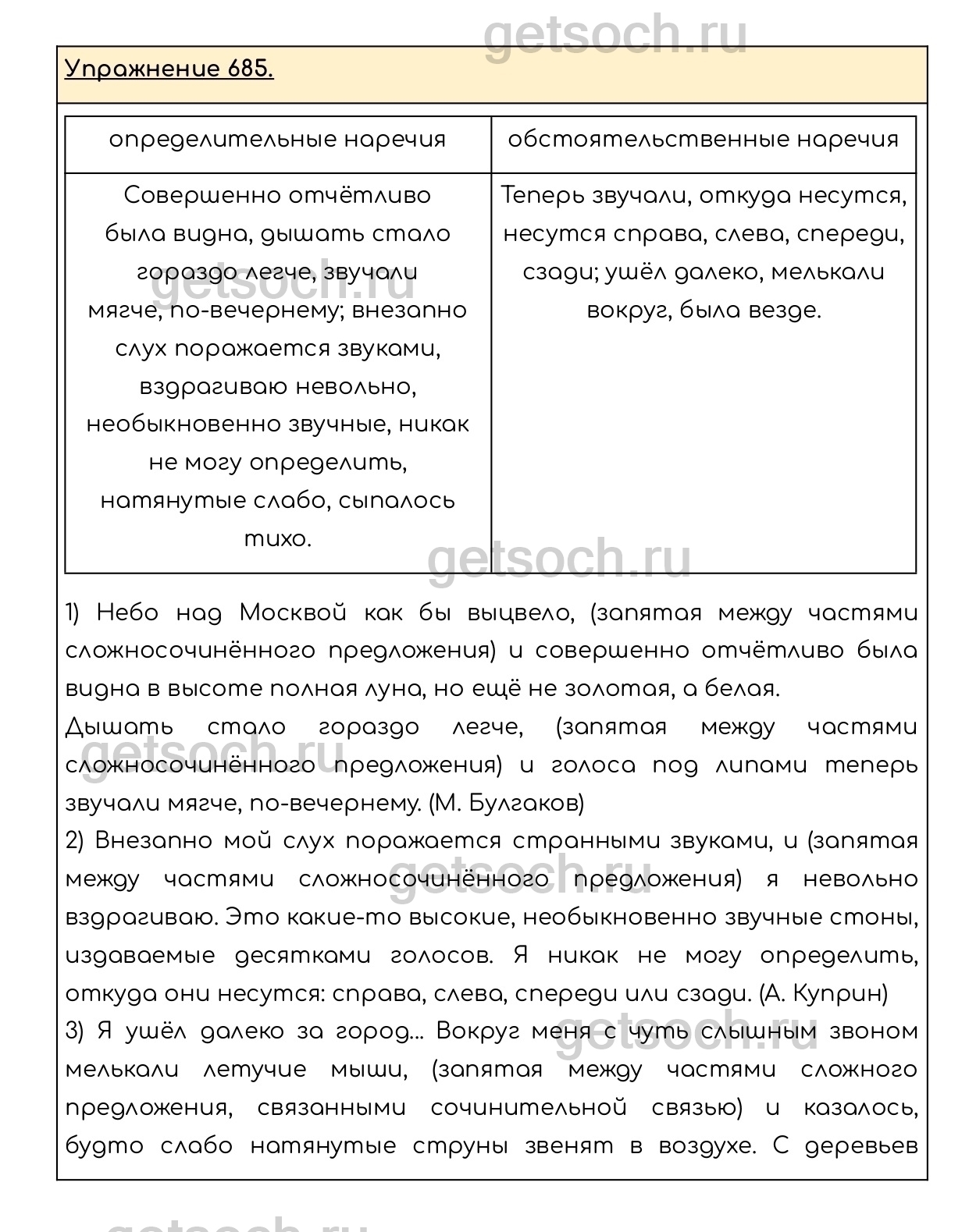 Рассмотрим ответы на Упражнение 685 из учебника по русскому языку для 6 класса Разумовской