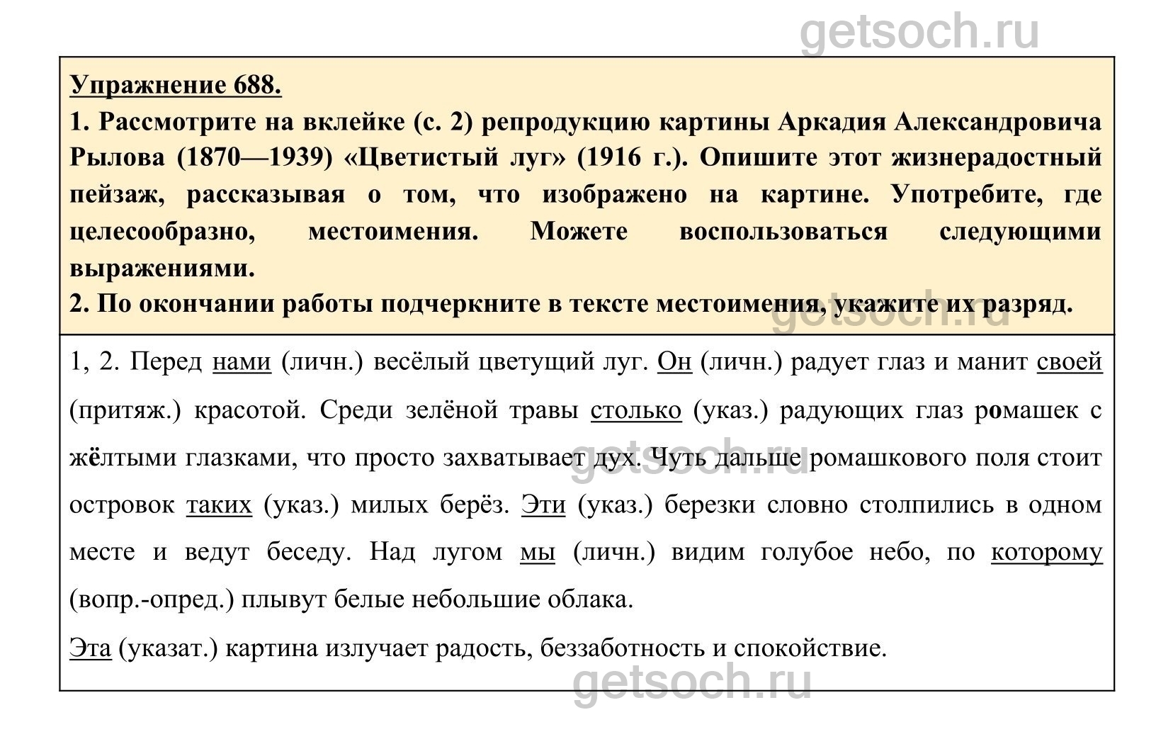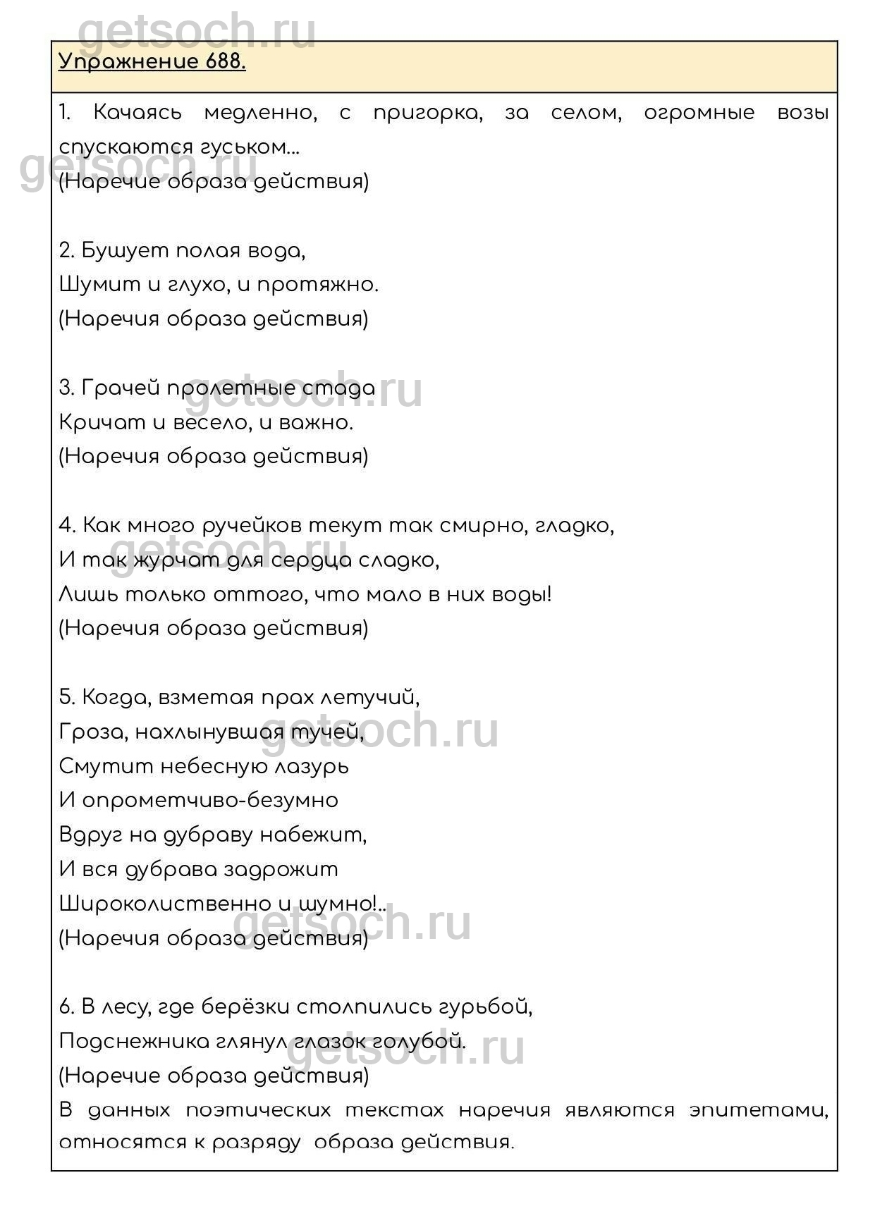 Рассмотрим ответы на Упражнение 688 из учебника по русскому языку для 6 класса Разумовской