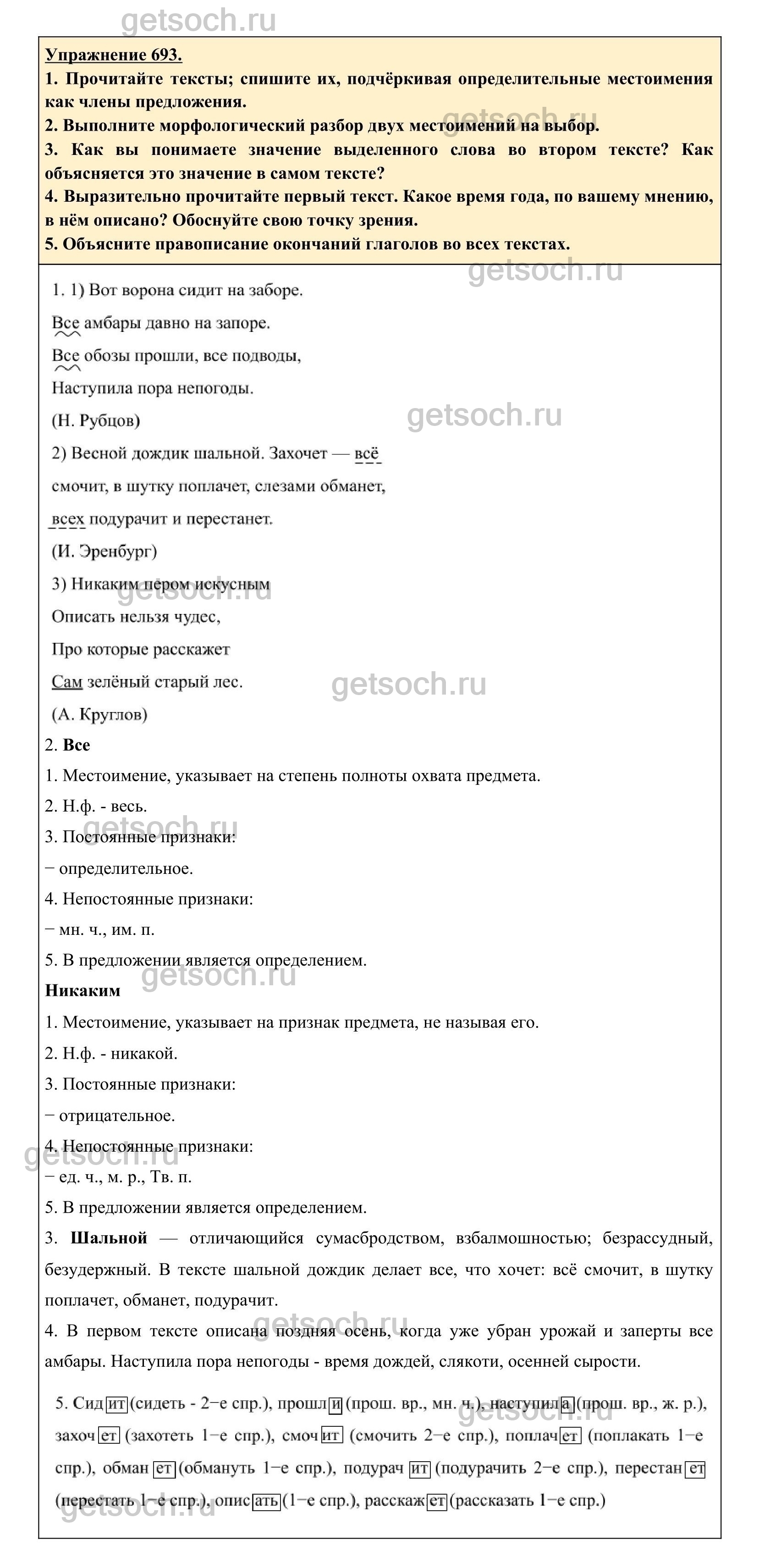 Рассмотрим ответы на Упражнение 693 из учебника по русскому языку для 6 класса Разумовской