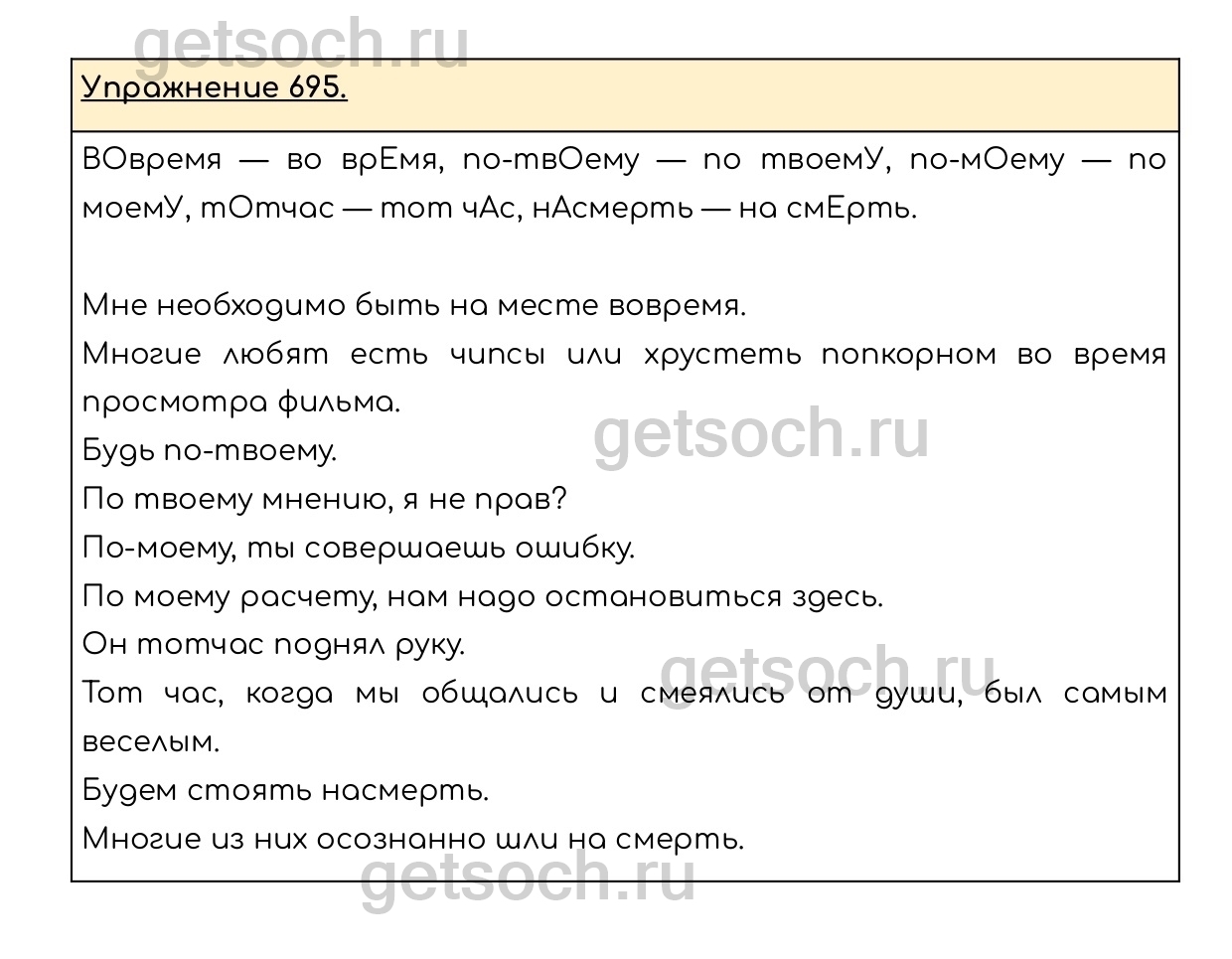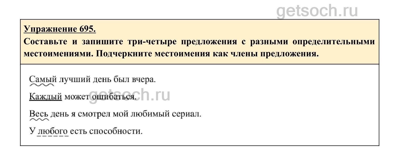 Рассмотрим ответы на Упражнение 695 из учебника по русскому языку для 6 класса Разумовской