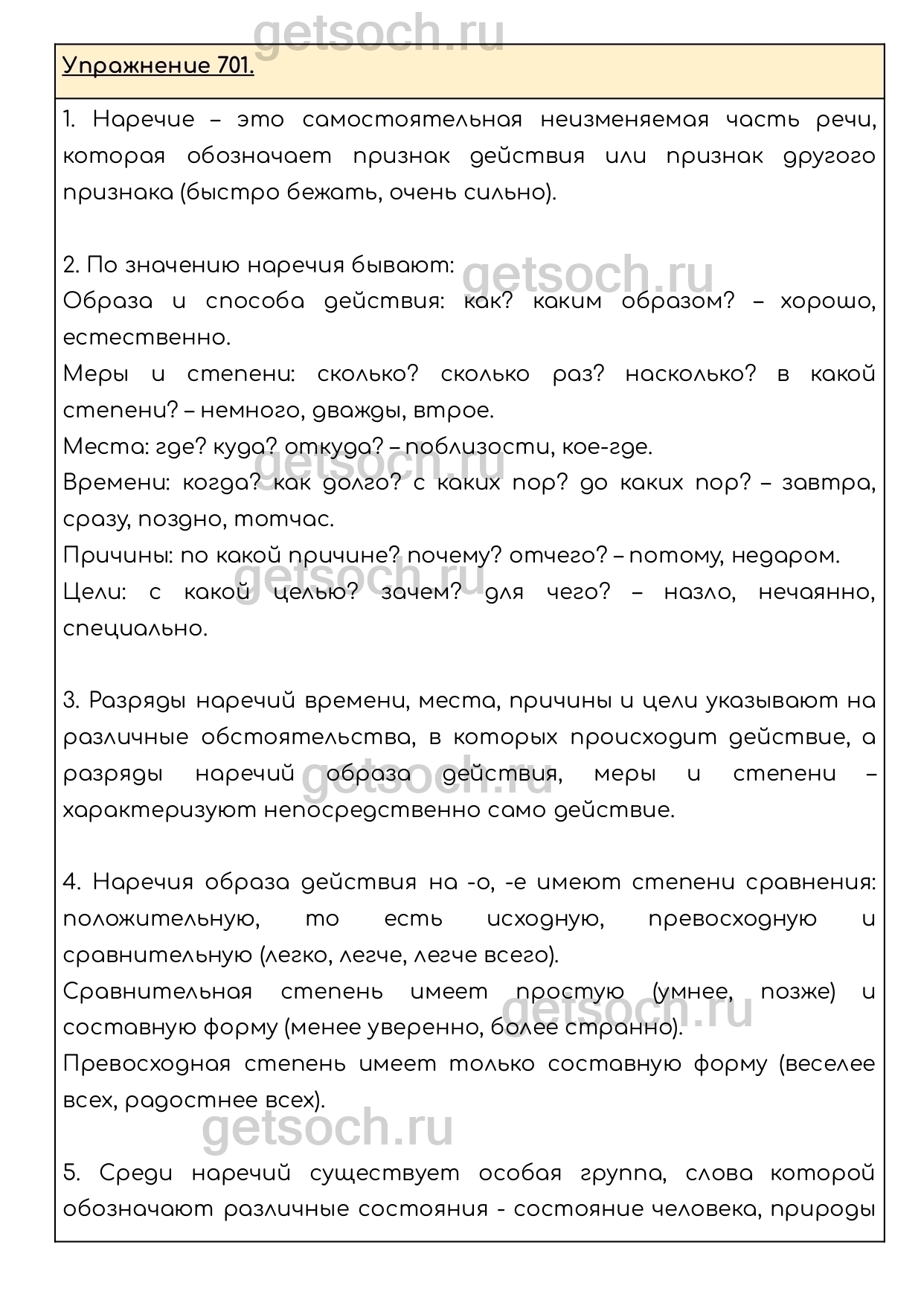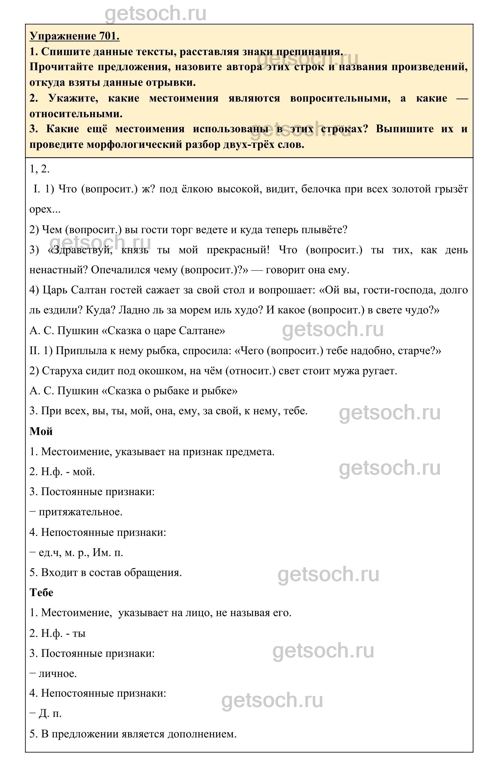 Рассмотрим ответы на Упражнение 701 из учебника по русскому языку для 6 класса Разумовской