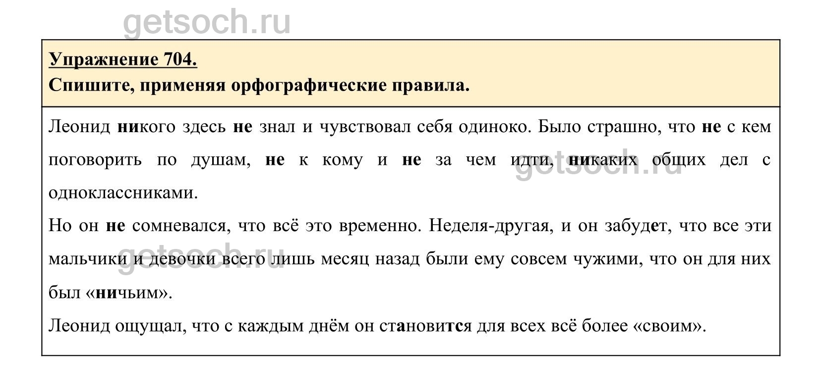 Рассмотрим ответы на Упражнение 704 из учебника по русскому языку для 6 класса Разумовской