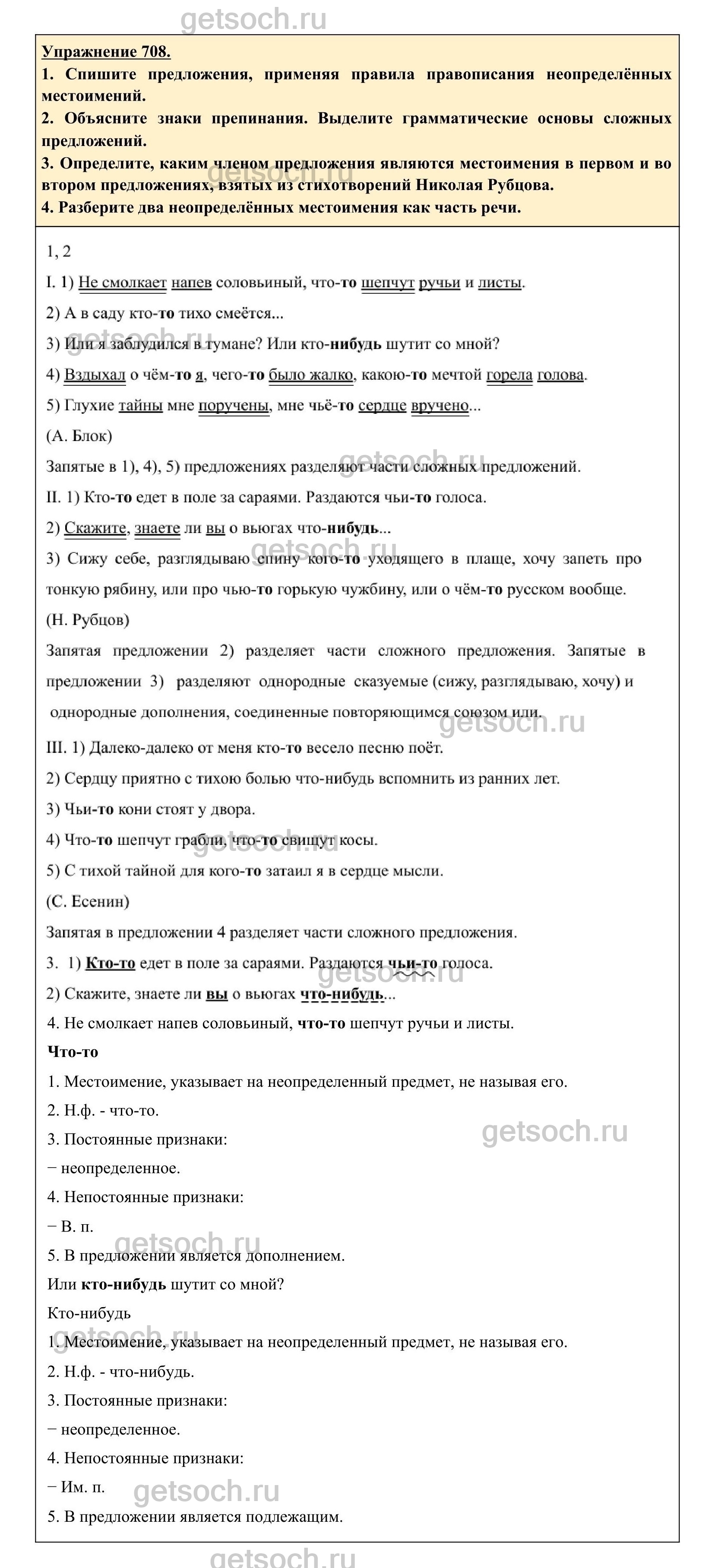 Рассмотрим готовые ответы на Упражнение 708 из учебника по русскому языку для 6 класса Разумовской