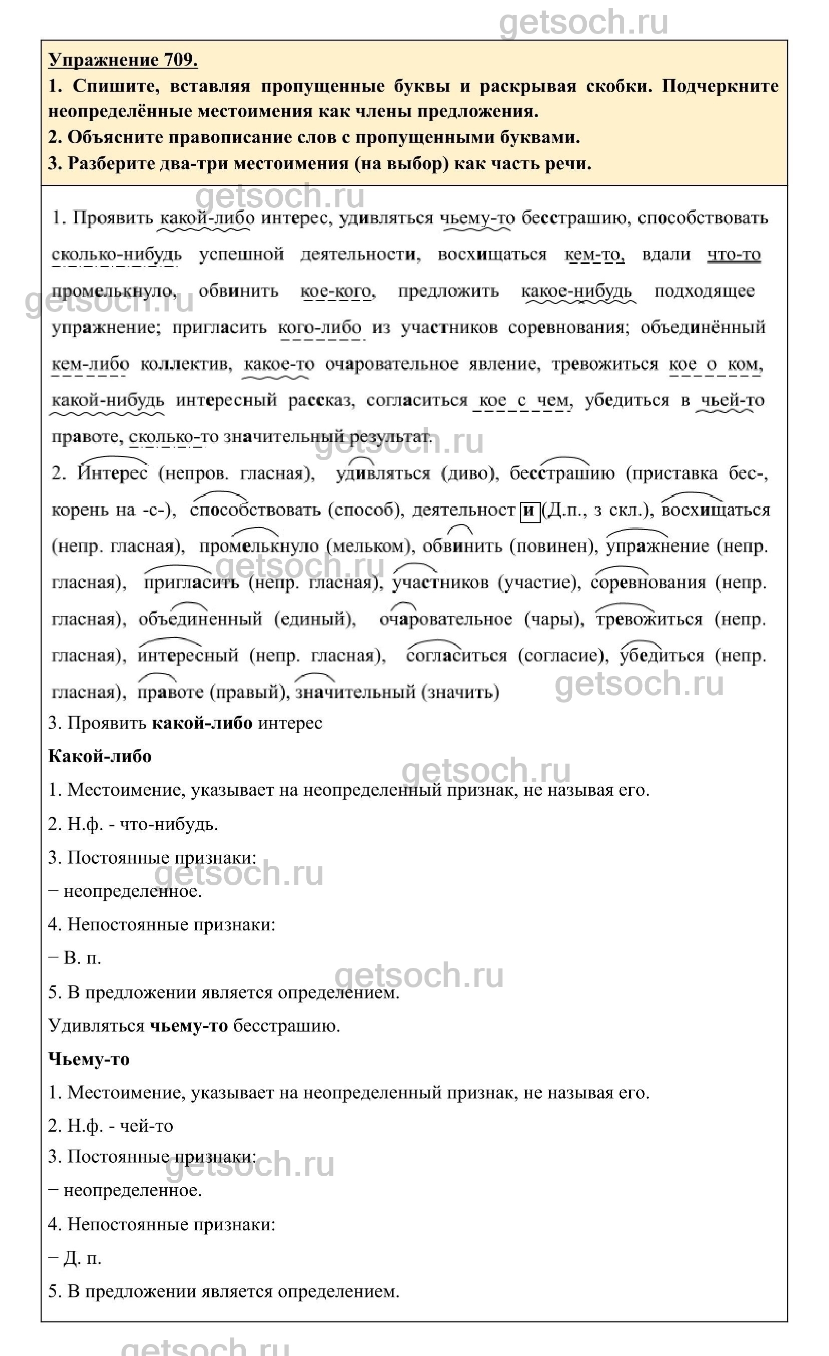 Рассмотрим готовые ответы на Упражнение 709 из учебника по русскому языку для 6 класса Разумовской