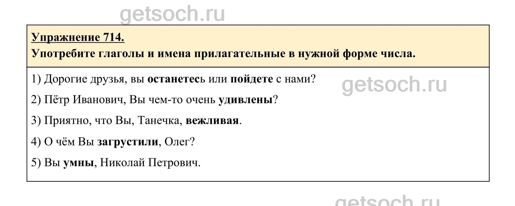 Рассмотрим готовые ответы на Упражнение 714 из учебника по русскому языку для 6 класса Разумовской