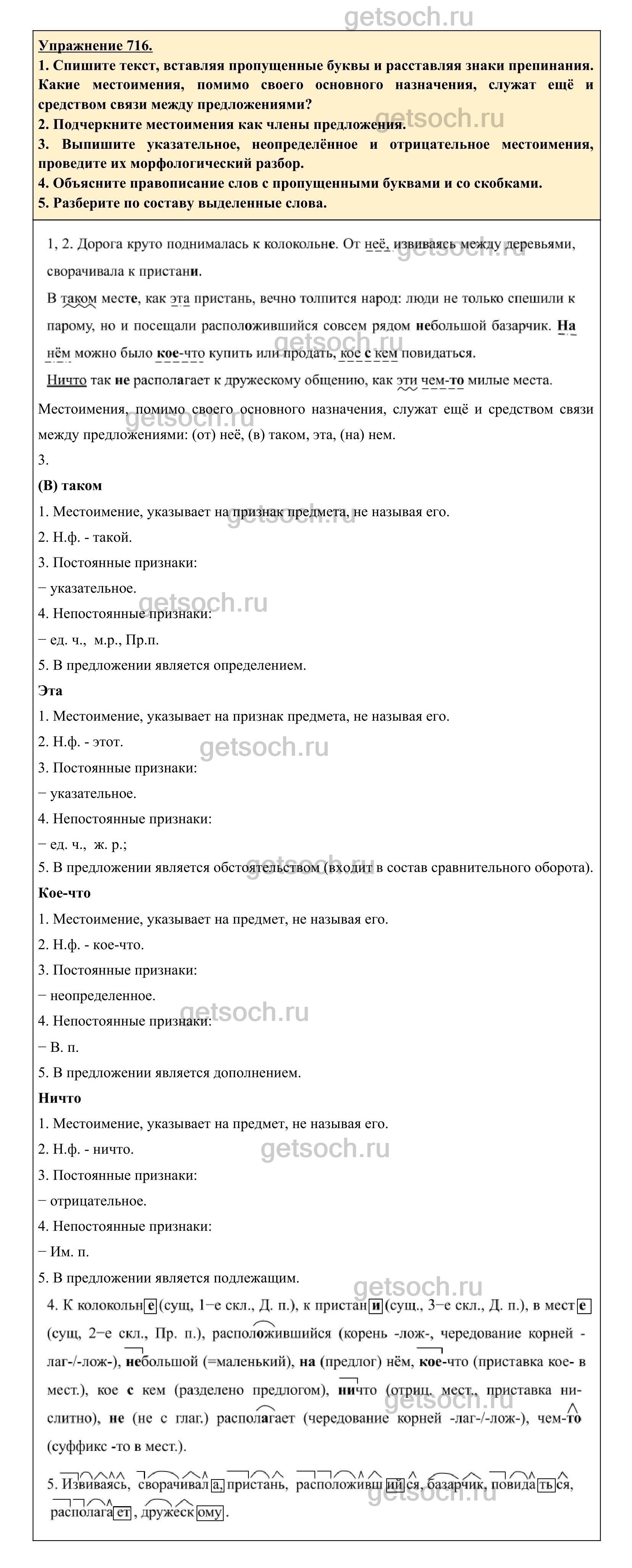 Рассмотрим готовые ответы на Упражнение 716 из учебника по русскому языку для 6 класса Разумовской