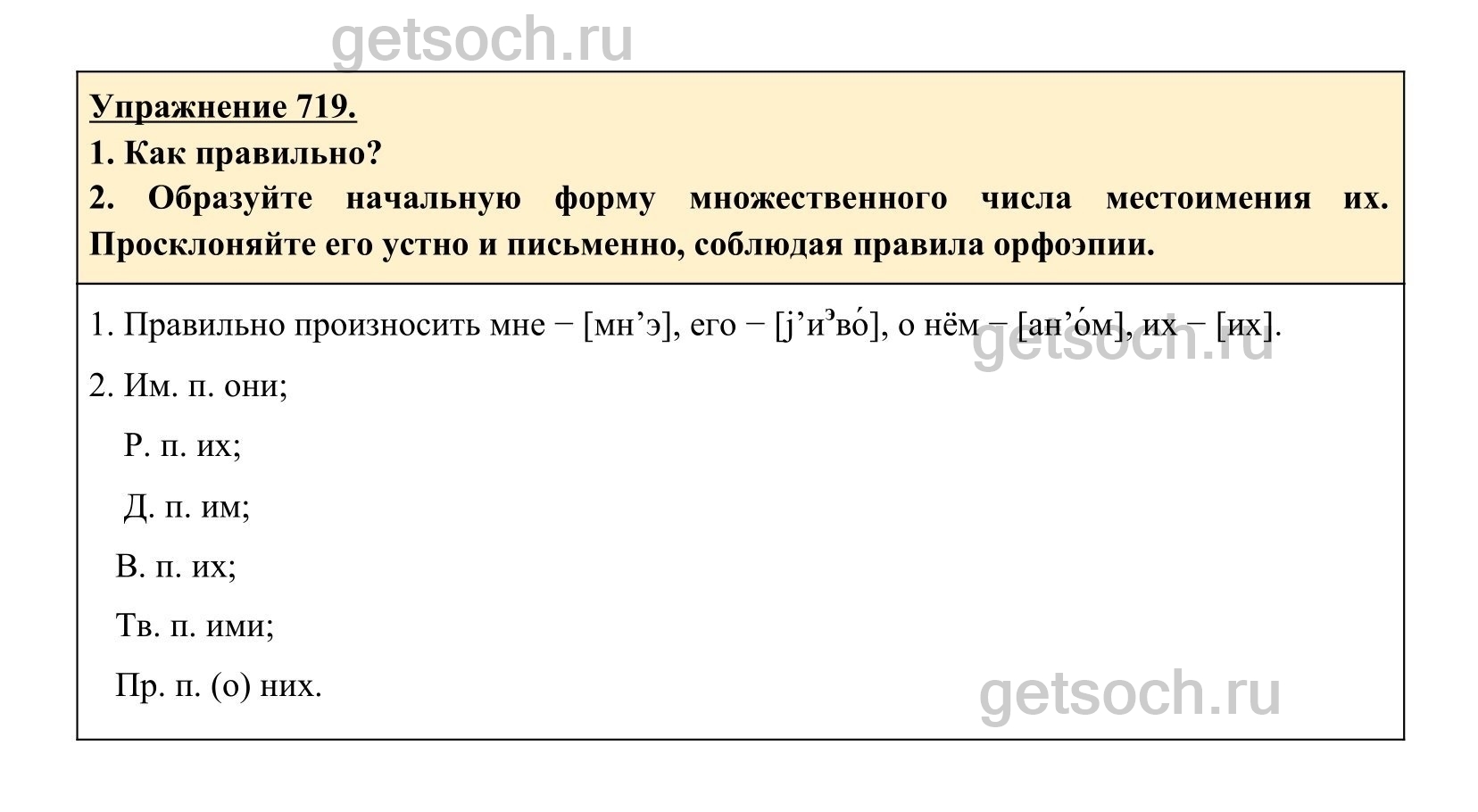 Рассмотрим готовые ответы на Упражнение 719 из учебника по русскому языку для 6 класса Разумовской