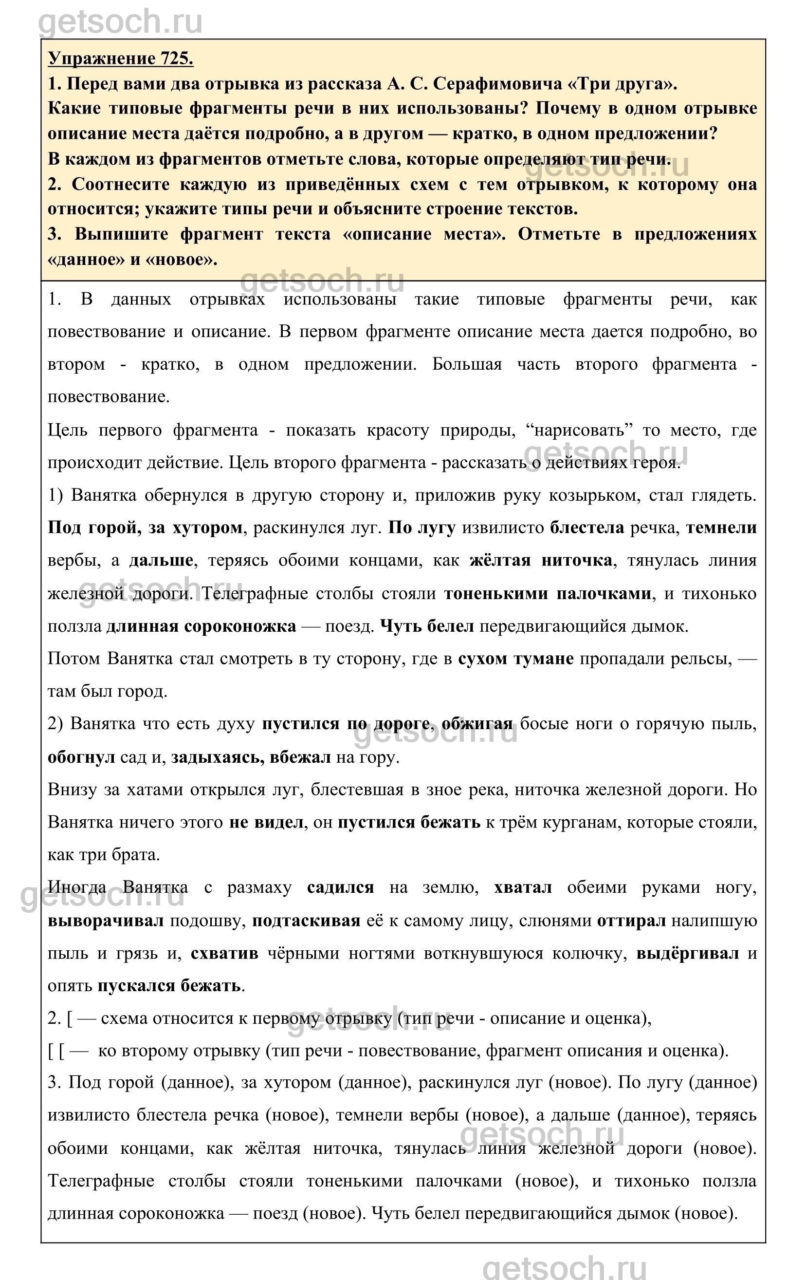 Рассмотрим готовые ответы на Упражнение 725 из учебника по русскому языку для 6 класса Разумовской