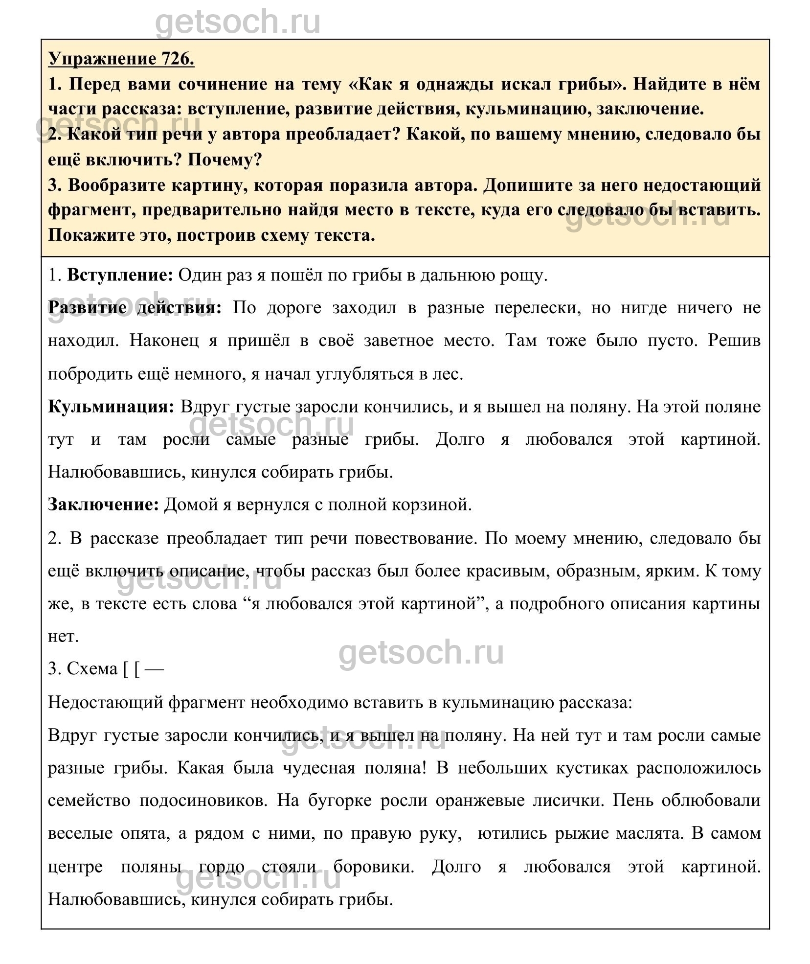Рассмотрим готовые ответы на Упражнение 726 из учебника по русскому языку для 6 класса Разумовской