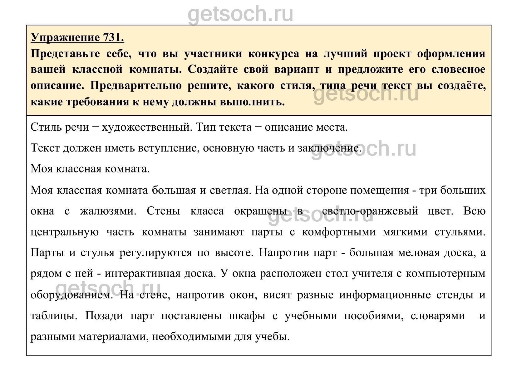 Рассмотрим готовые ответы на Упражнение 731 из учебника по русскому языку для 6 класса Разумовской