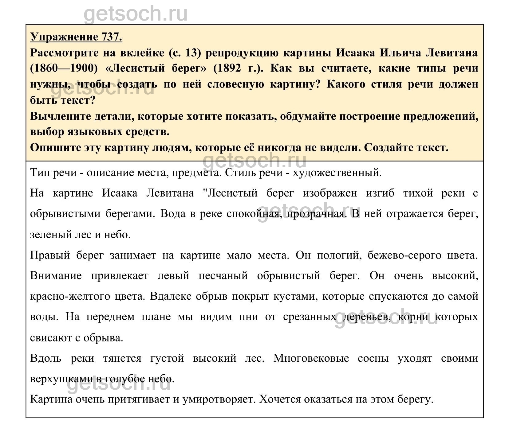 (1860—1900) «Лесистый берег» (1892 г.). Как вы считаете, какие типы речи