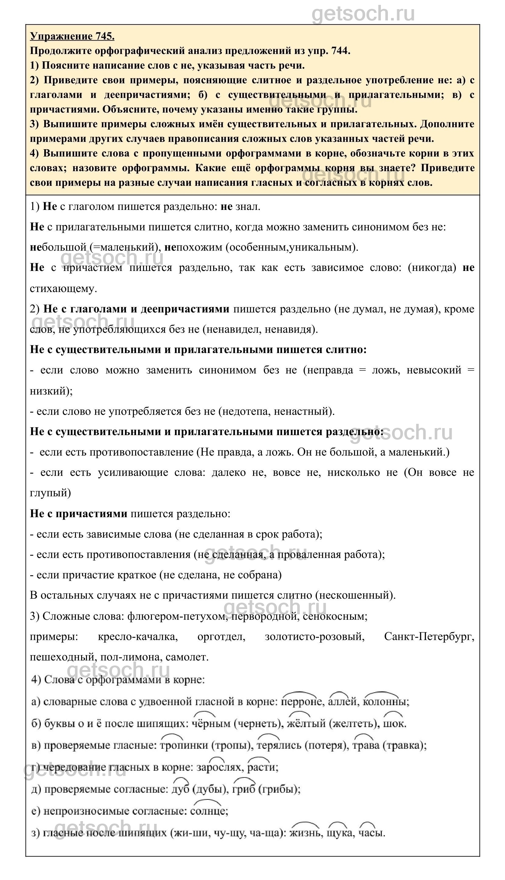 Рассмотрим готовые ответы на Упражнение 745 из учебника по русскому языку для 6 класса Разумовской