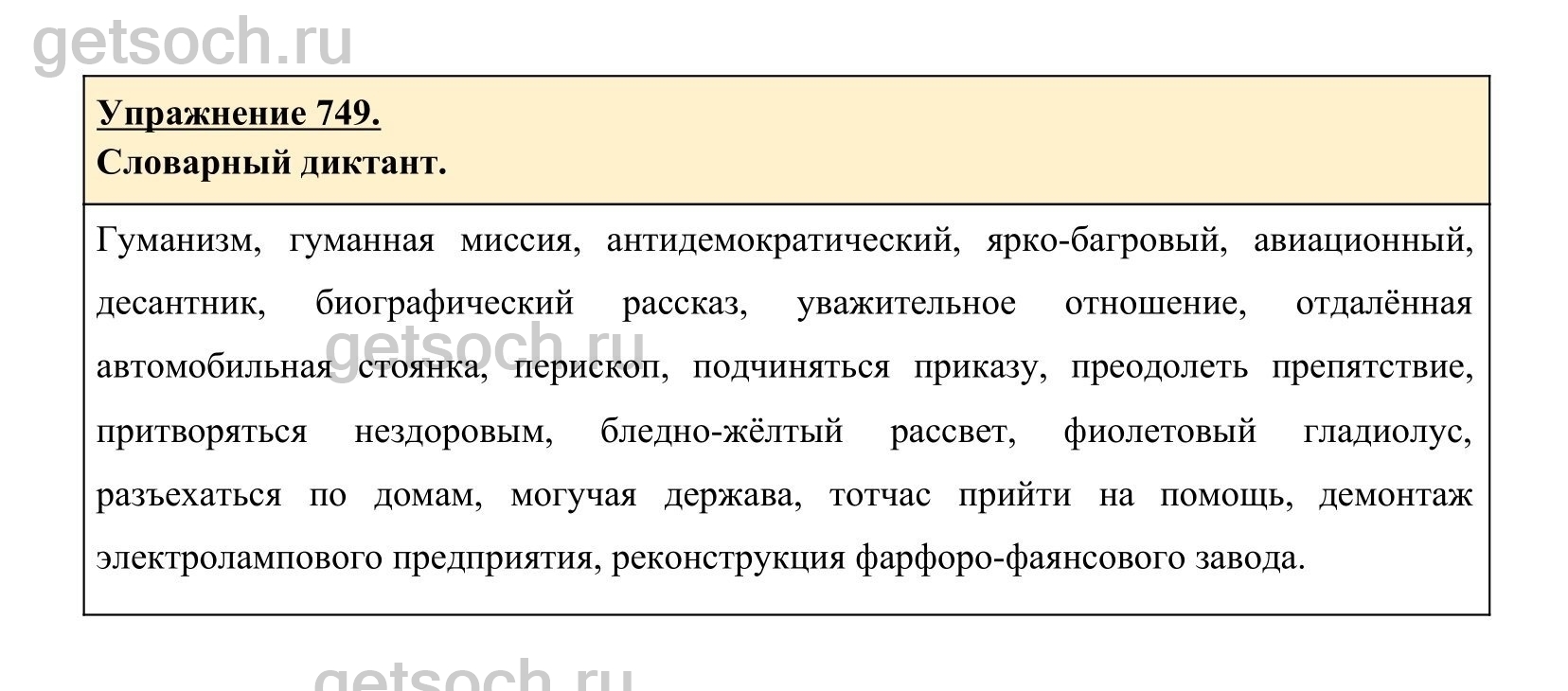 Рассмотрим готовые ответы на Упражнение 749 из учебника по русскому языку для 6 класса Разумовской