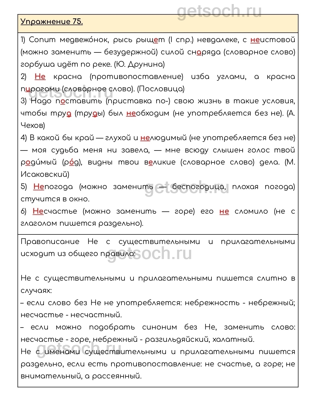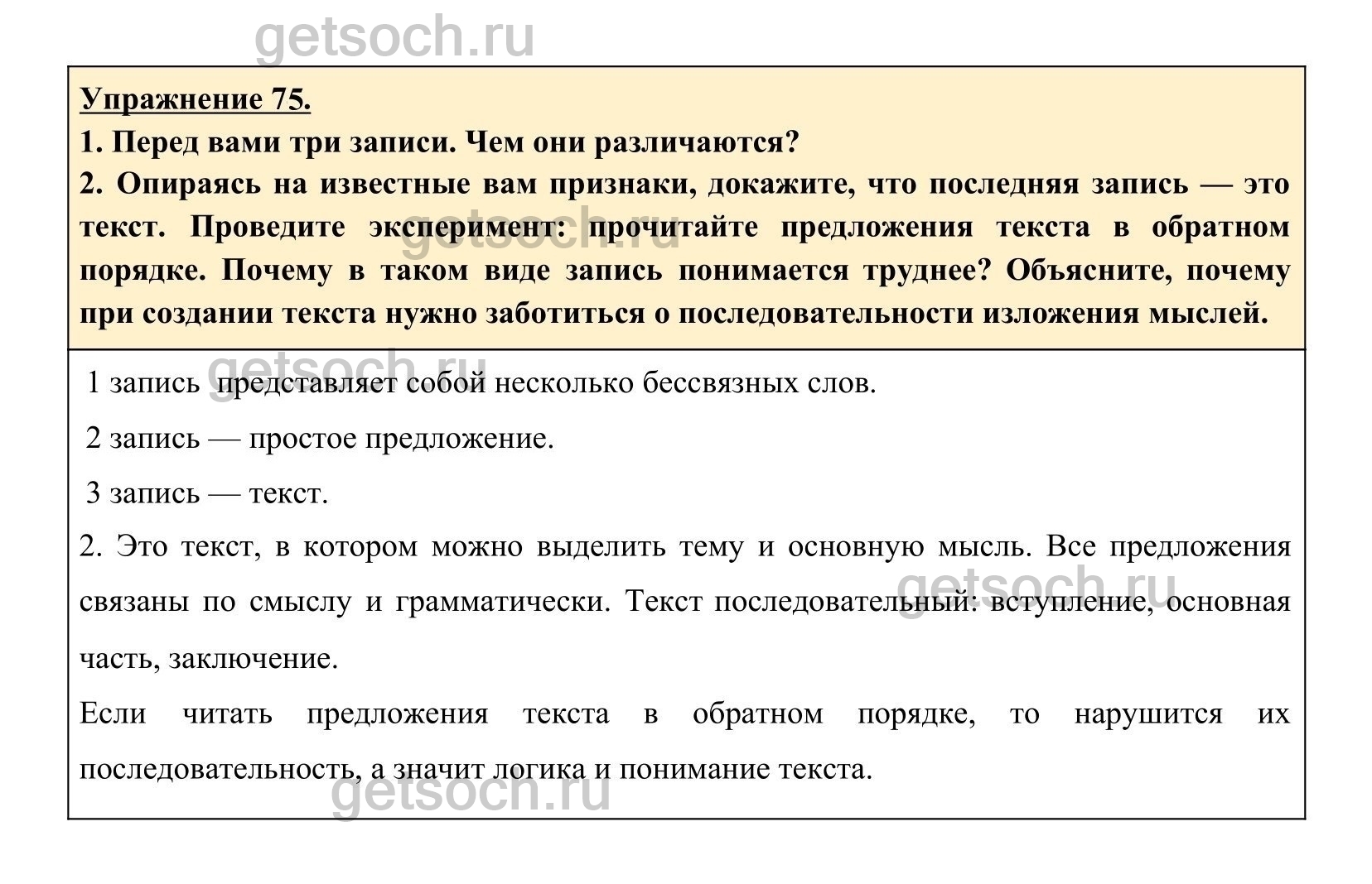 Рассмотрим ответы на Упражнение 75 из учебника по русскому языку для 6 класса Разумовской