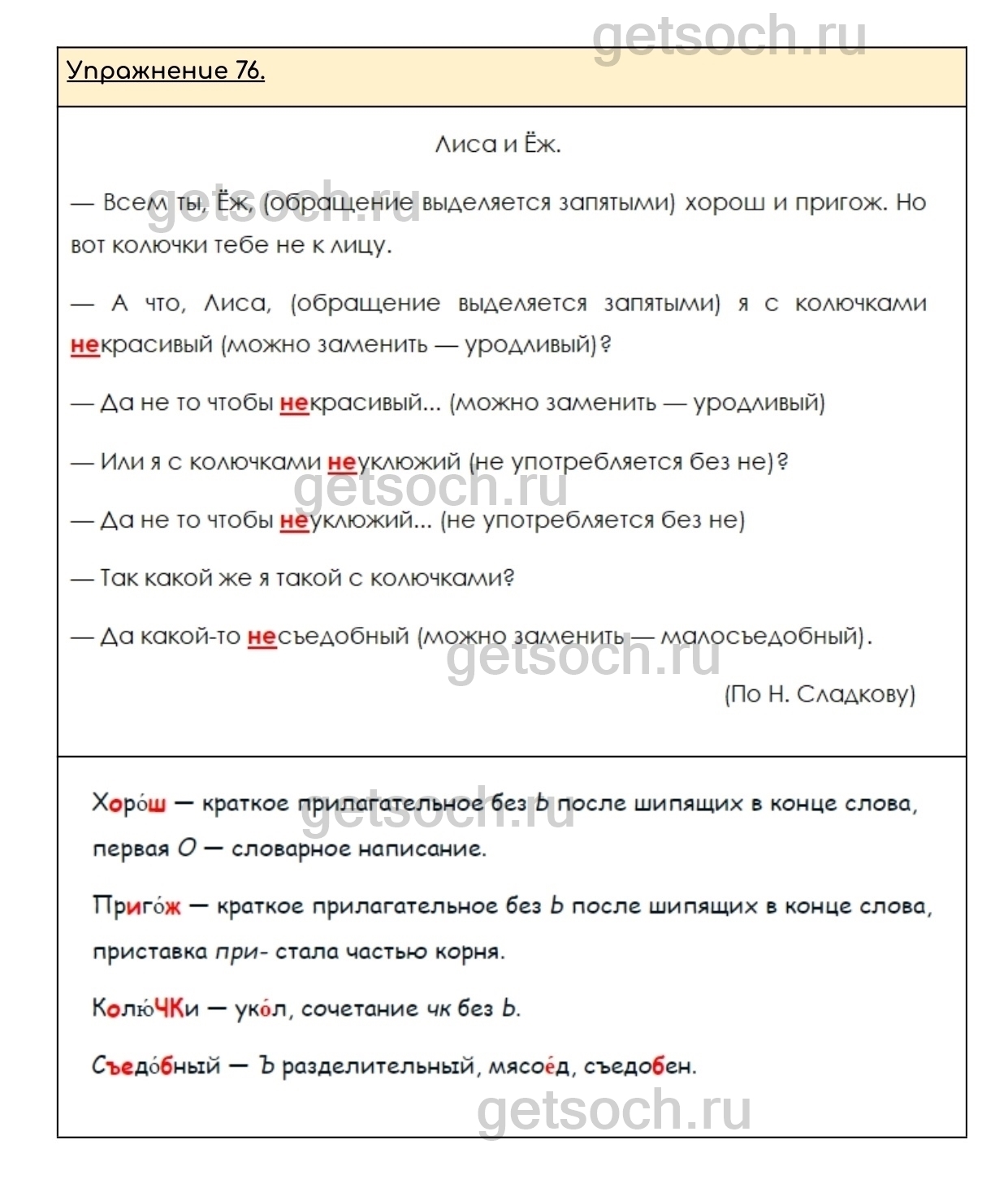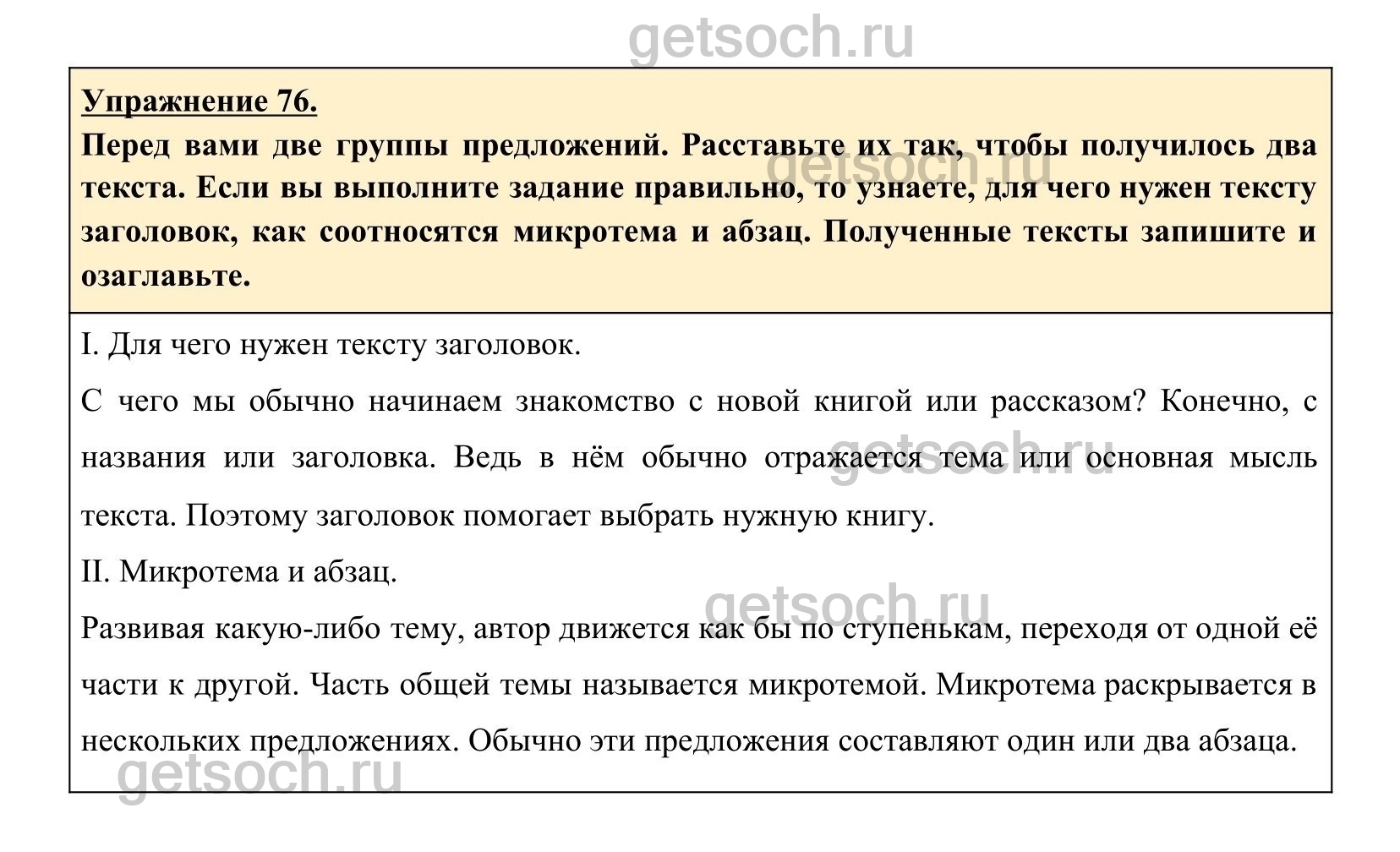 Рассмотрим ответы на Упражнение 76 из учебника по русскому языку для 6 класса Разумовской