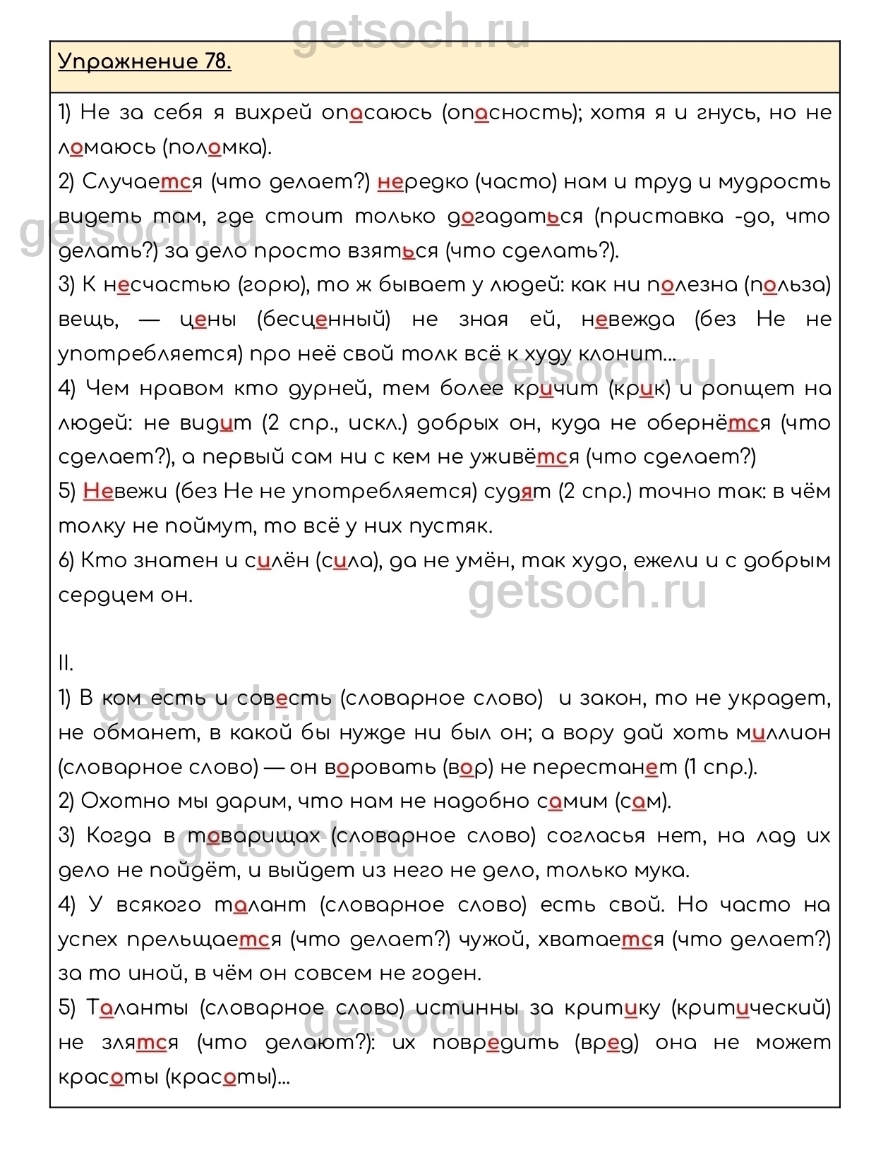 Рассмотрим ответы на Упражнение 78 из учебника по русскому языку для 6 класса Разумовской