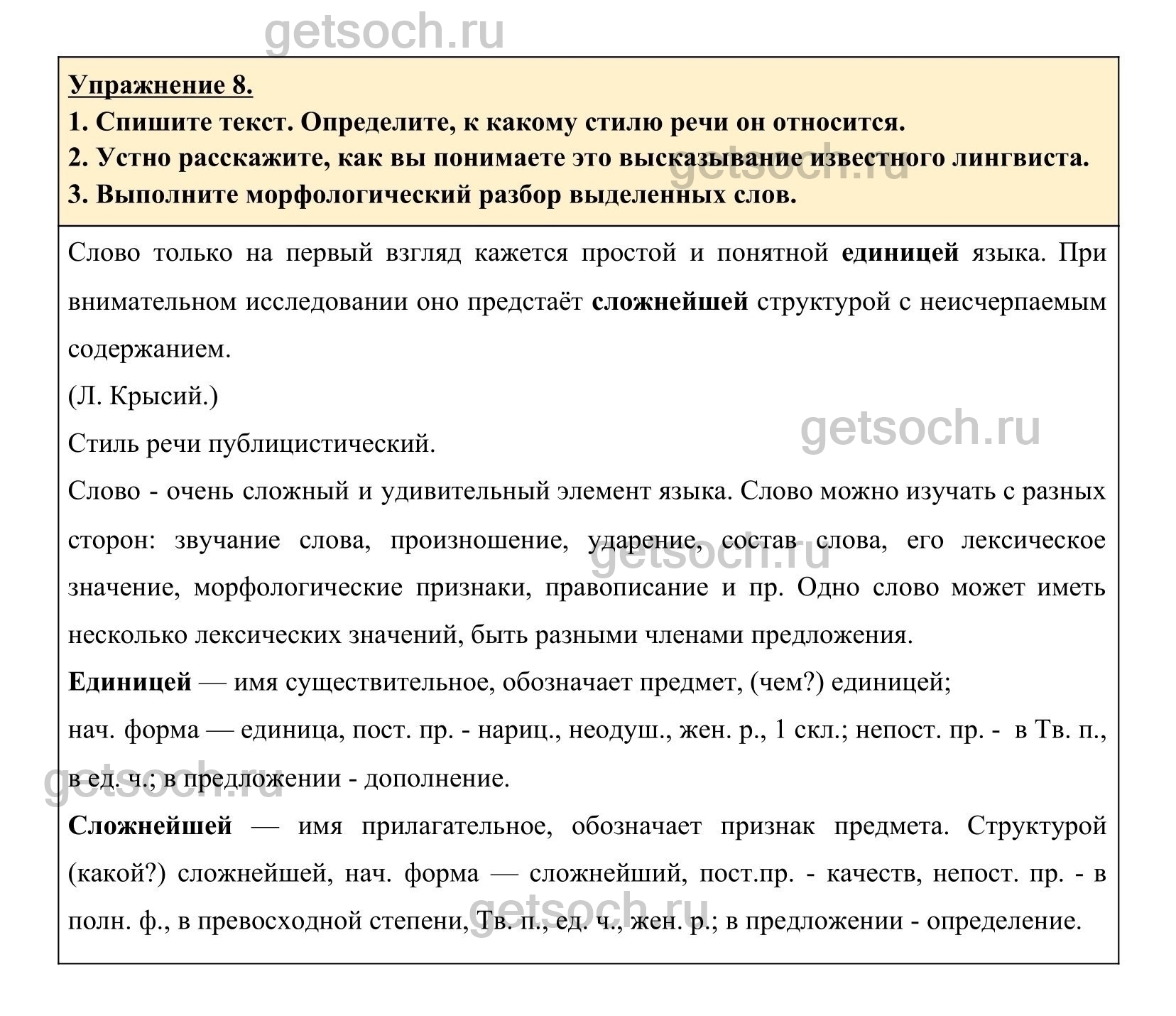 Рассмотрим ответы на Упражнение 8 из учебника по русскому языку для 6 класса Разумовской