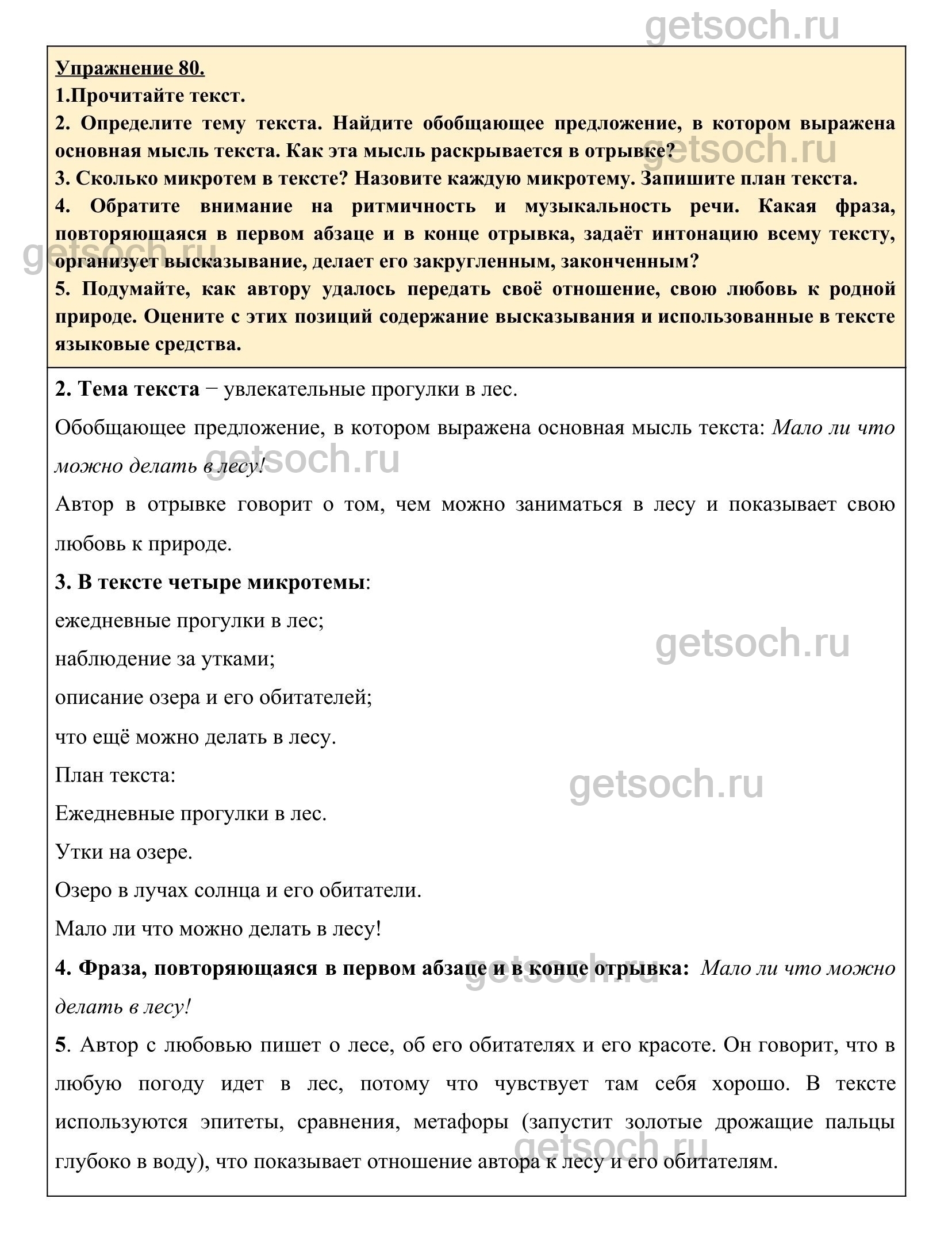 Рассмотрим ответы на Упражнение 80 из учебника по русскому языку для 6 класса Разумовской