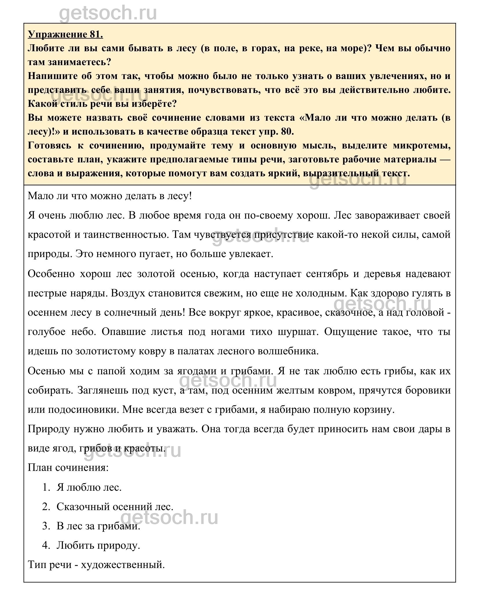 лесу)!» и использовать в качестве образца текст упр. 80.