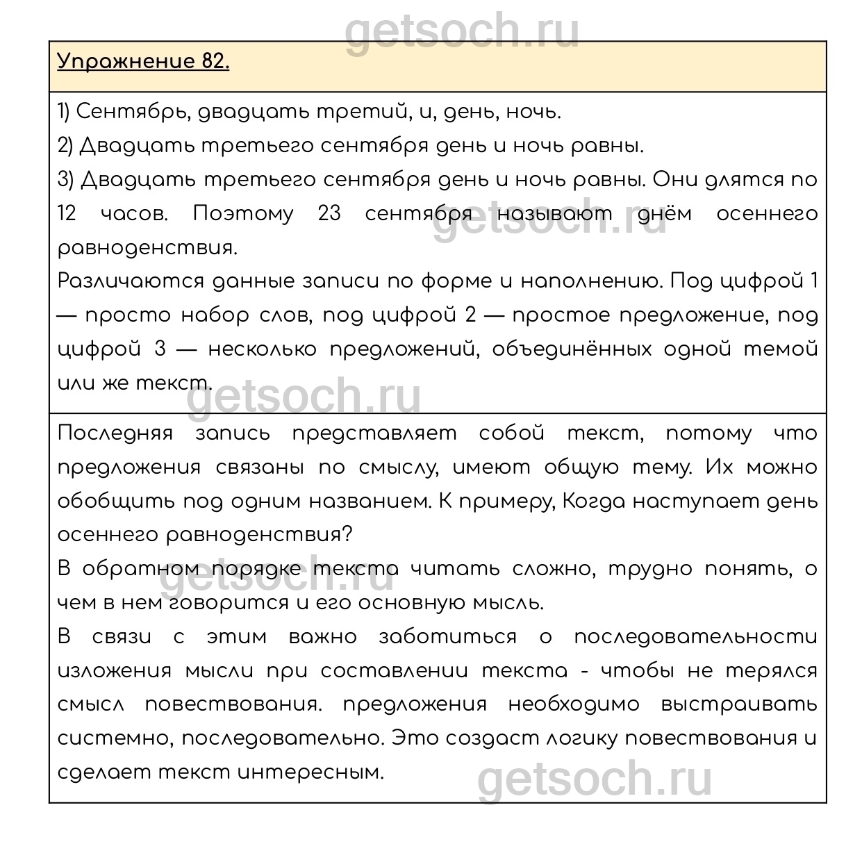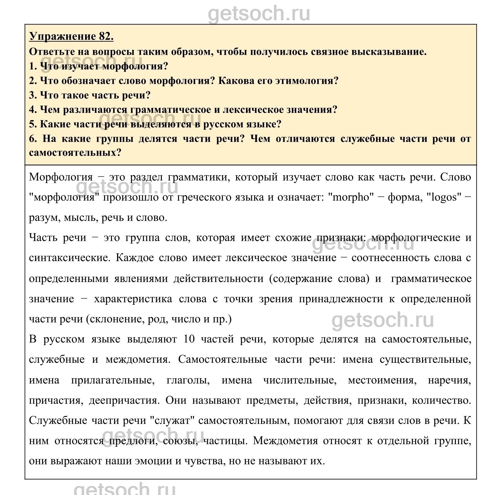 Рассмотрим ответы на Упражнение 82 из учебника по русскому языку для 6 класса Разумовской