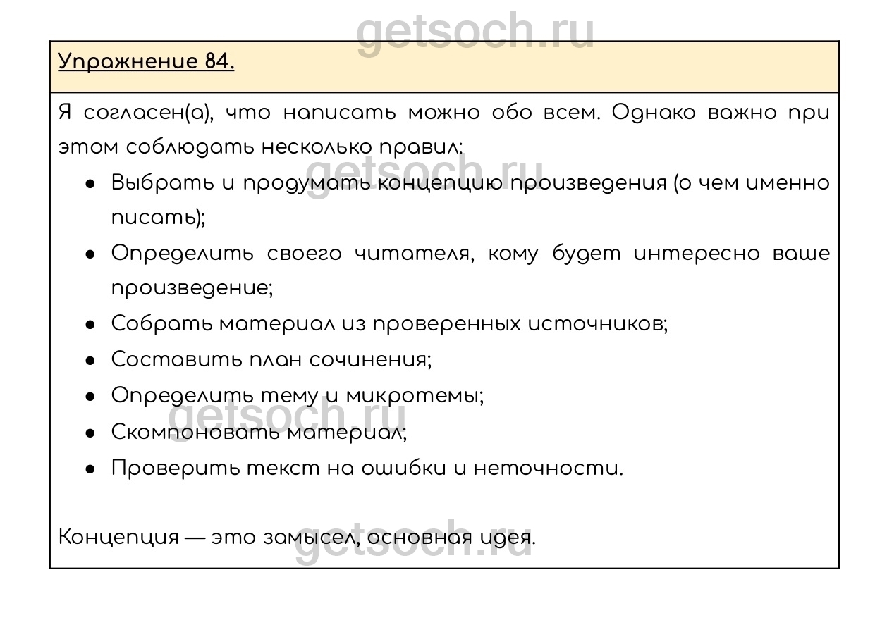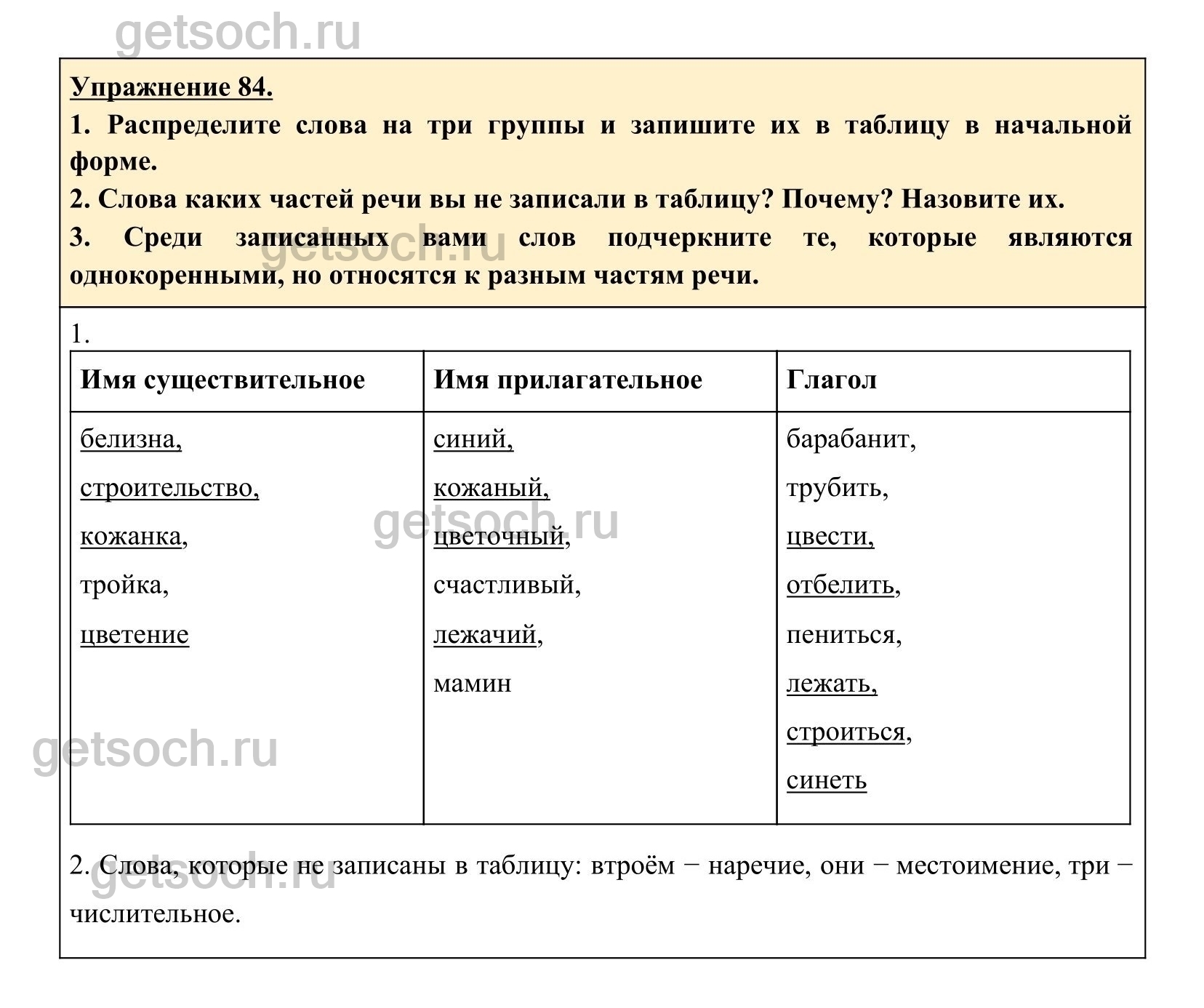 Рассмотрим ответы на Упражнение 84 из учебника по русскому языку для 6 класса Разумовской