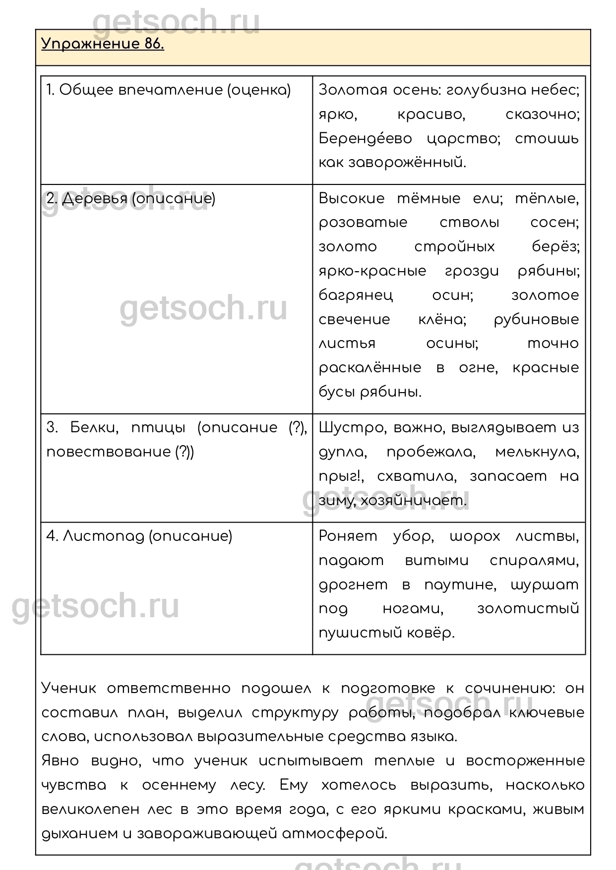 Рассмотрим ответы на Упражнение 86 из учебника по русскому языку для 6 класса Разумовской