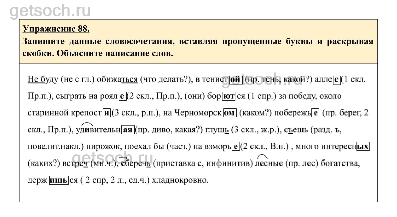Рассмотрим ответы на Упражнение 88 из учебника по русскому языку для 6 класса Разумовской