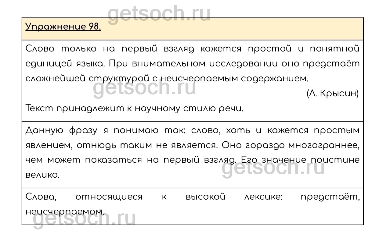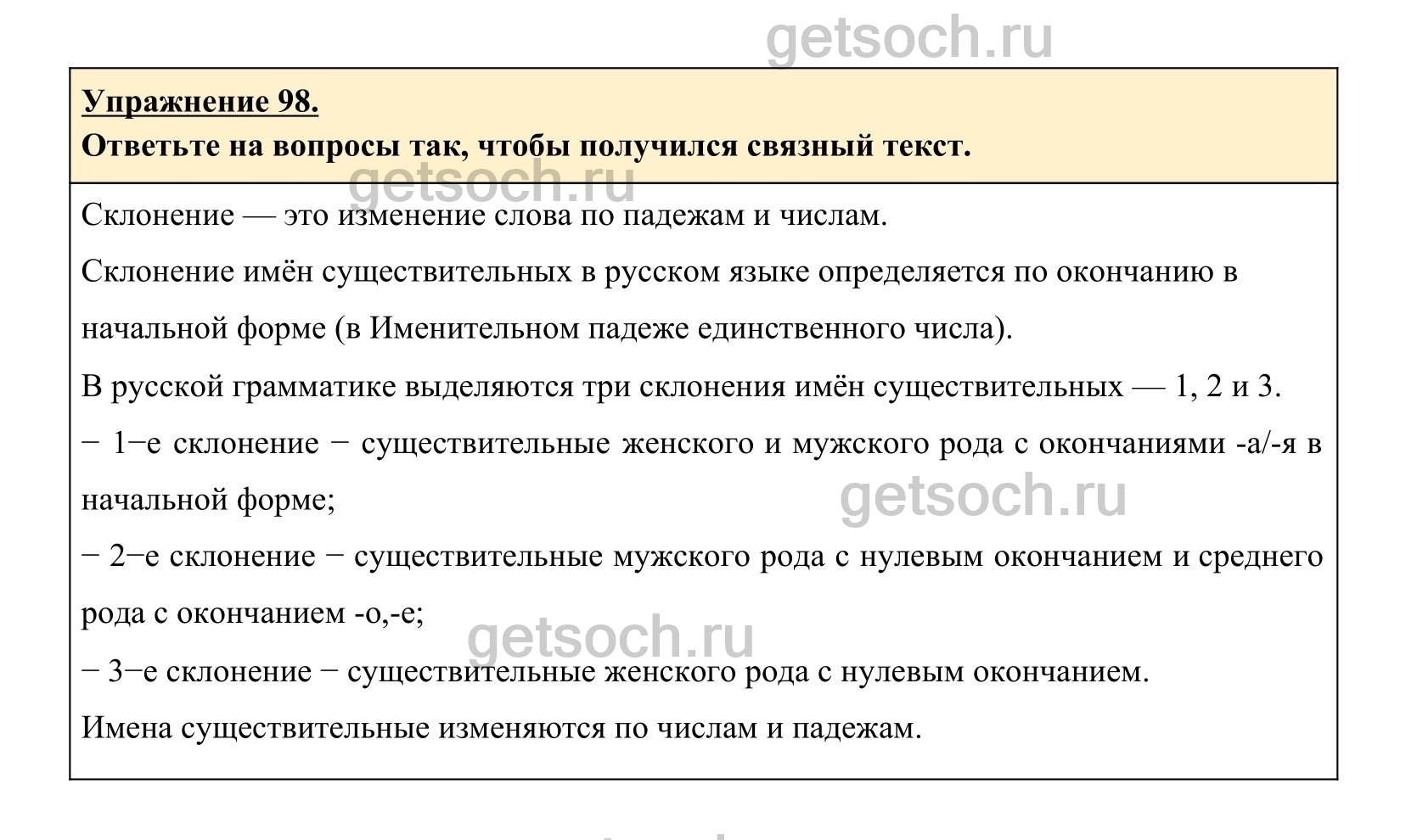 Рассмотрим ответы на Упражнение 98 из учебника по русскому языку для 6 класса Разумовской