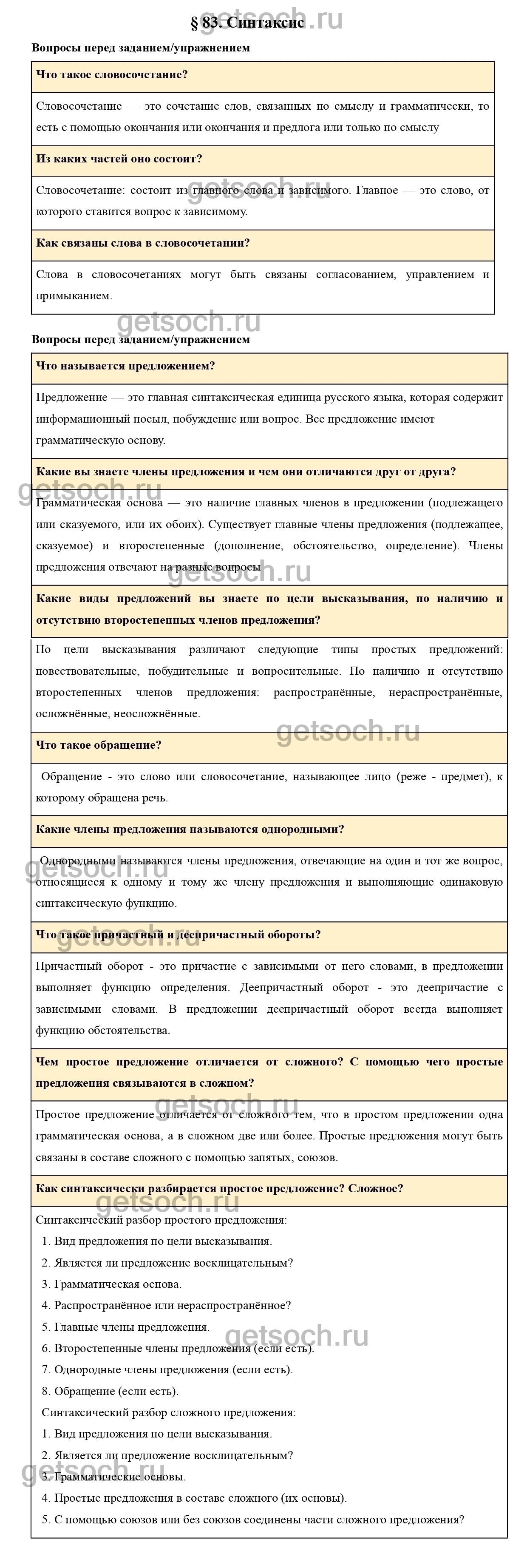 Вопросы к параграфу 83- ГДЗ по Русскому языку 7 класс Учебник Ладыженская