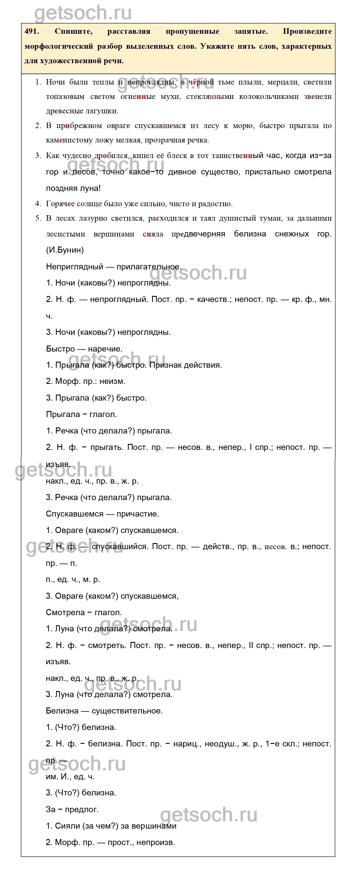 Упражнение 491- ГДЗ по Русскому языку 7 класс Учебник Ладыженская